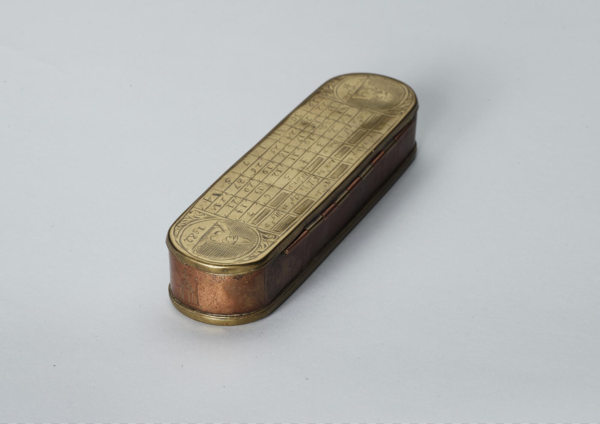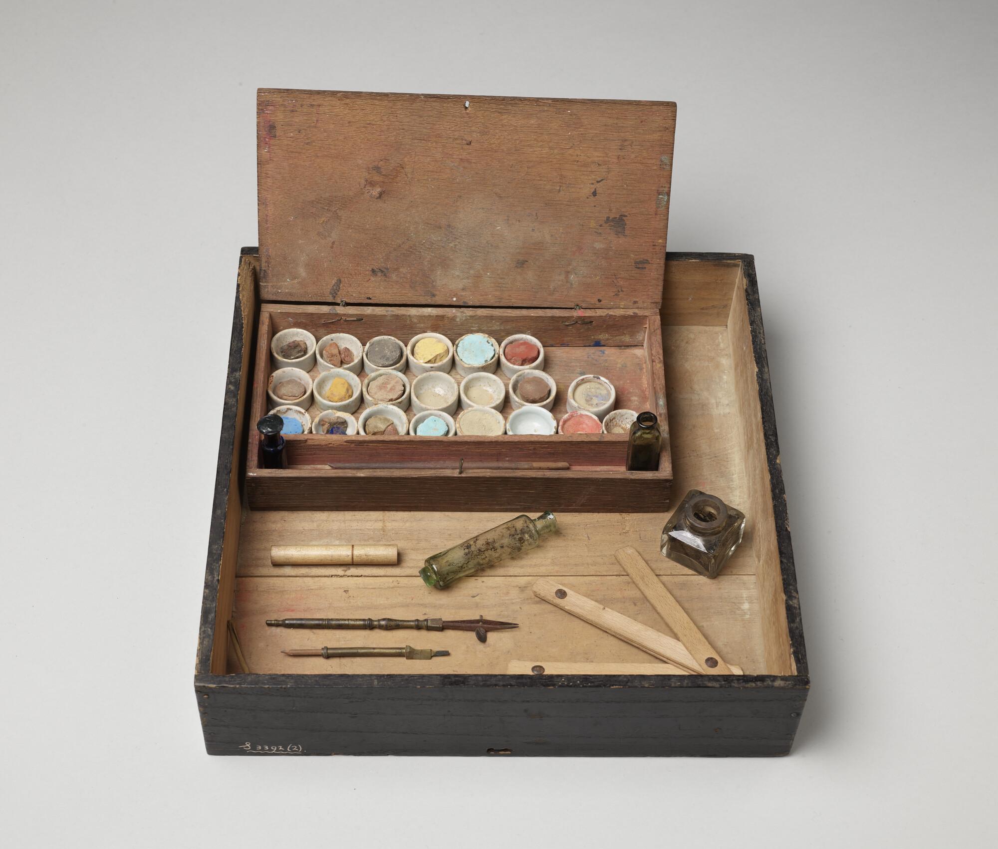 Tekenkist met los deksel, met tekenbenodigdheden