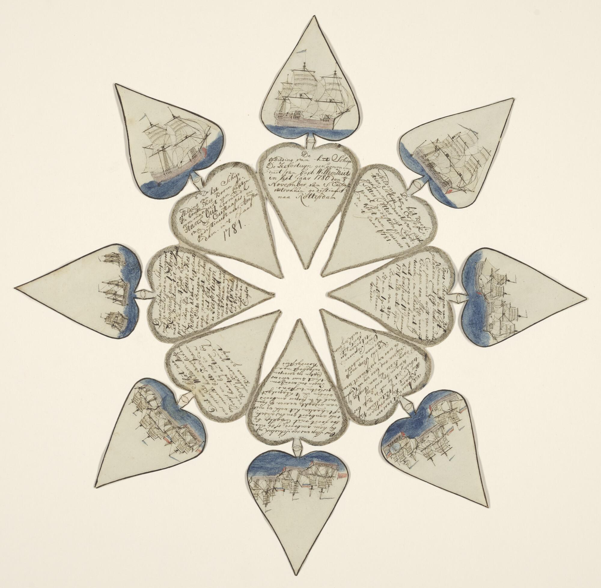 Een 'hartenbrief', krans van 16 uitgeknipte papieren...