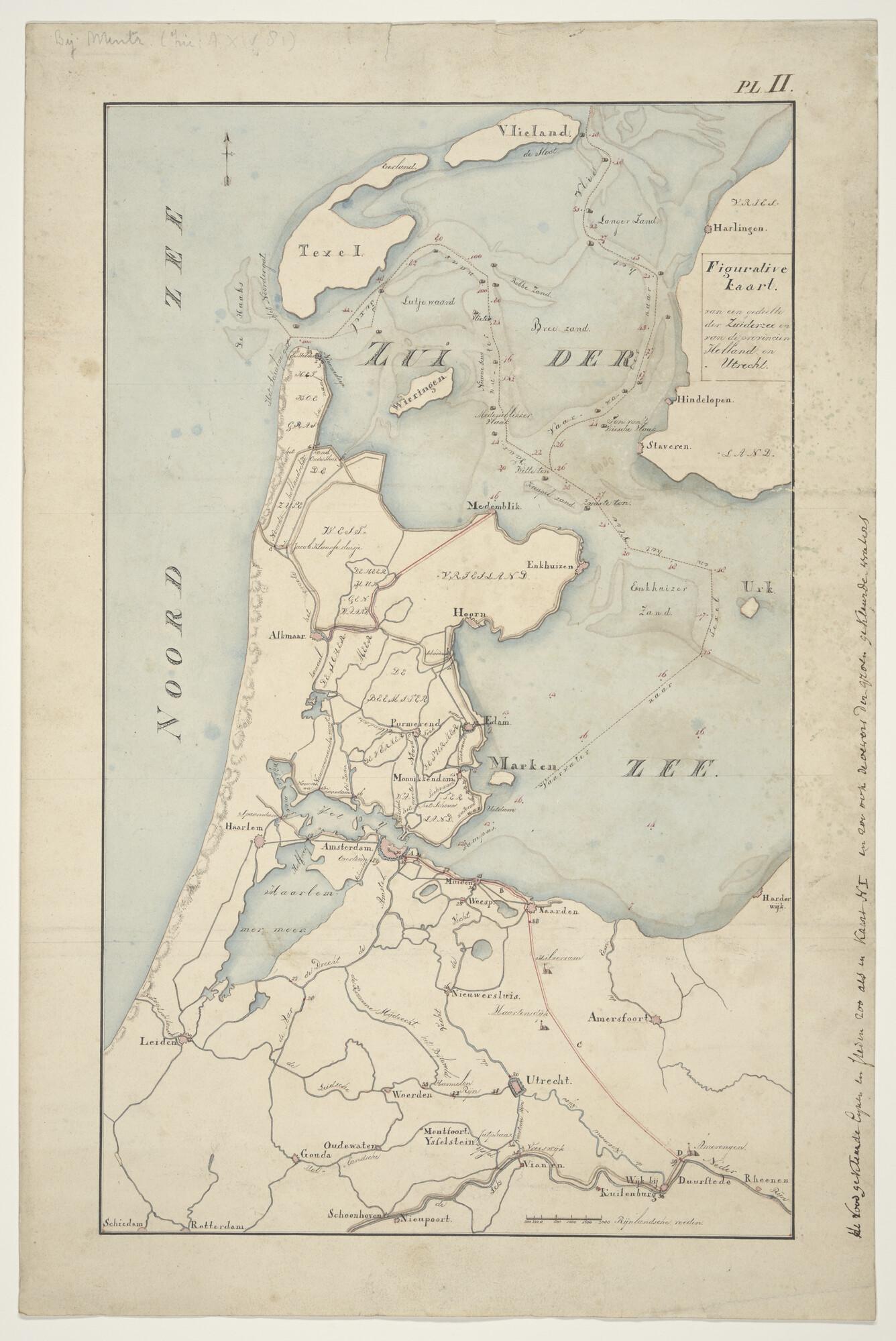 Gekleurde handschriftkaart van de verbinding van Ams...