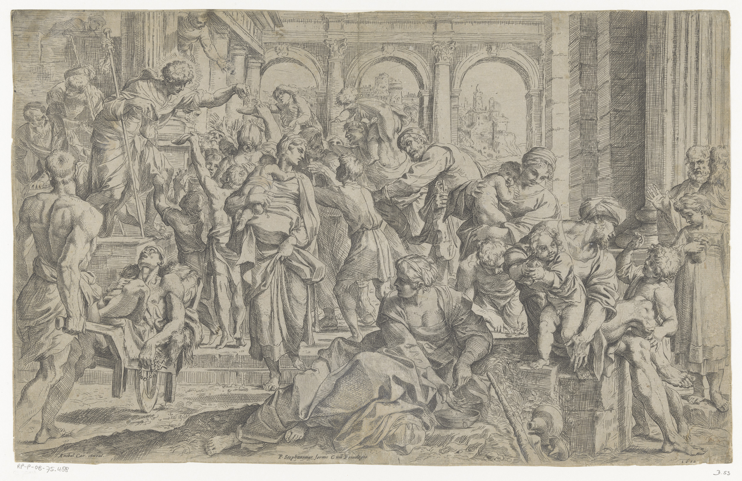 De heilige Rochus deelt aalmoezen uit