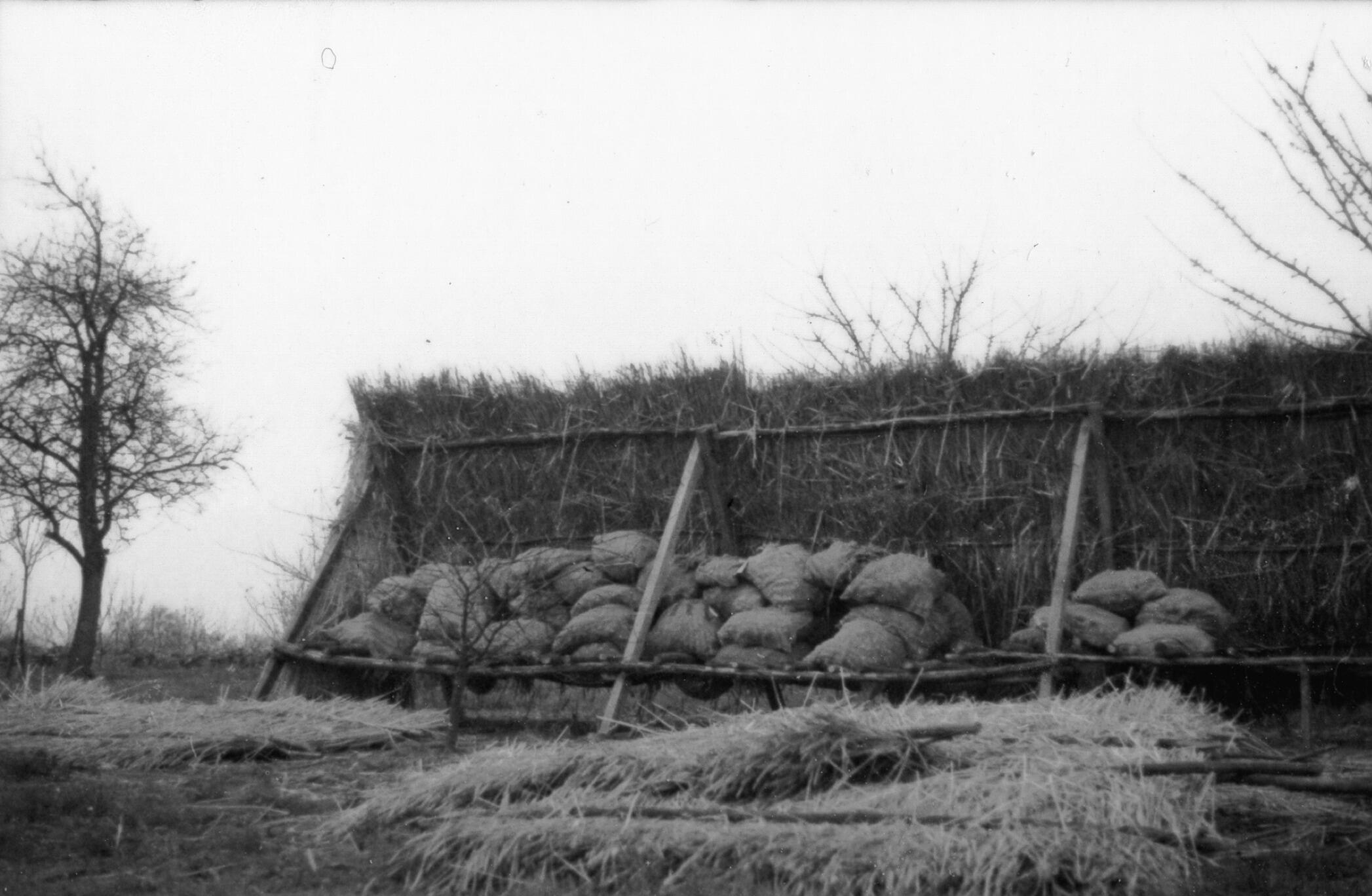 Maisschuur, Maasniel, 1937 (zwart-wit foto)