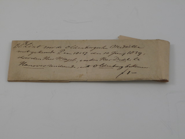 Papier bij lint Oldenburgsche Medaille 1815