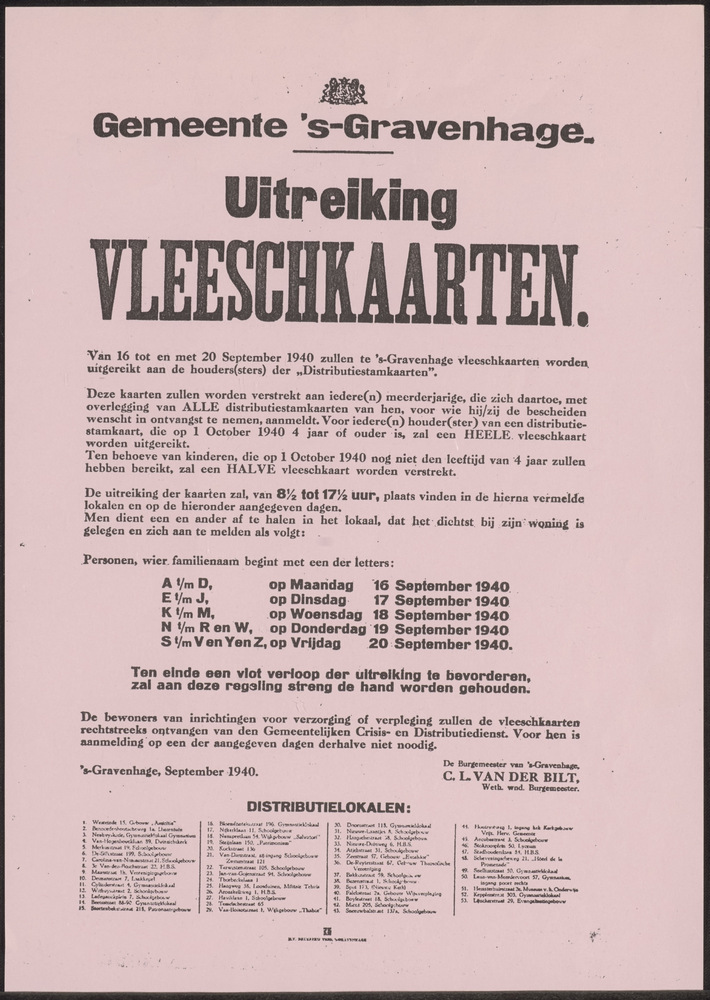 Gemeente 's-Gravenhage "Uitreiking Vleeskaarten"