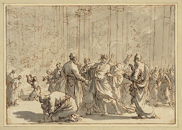 De koning van Juïda met zijn vrouw en zijn gevolg