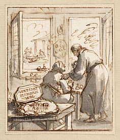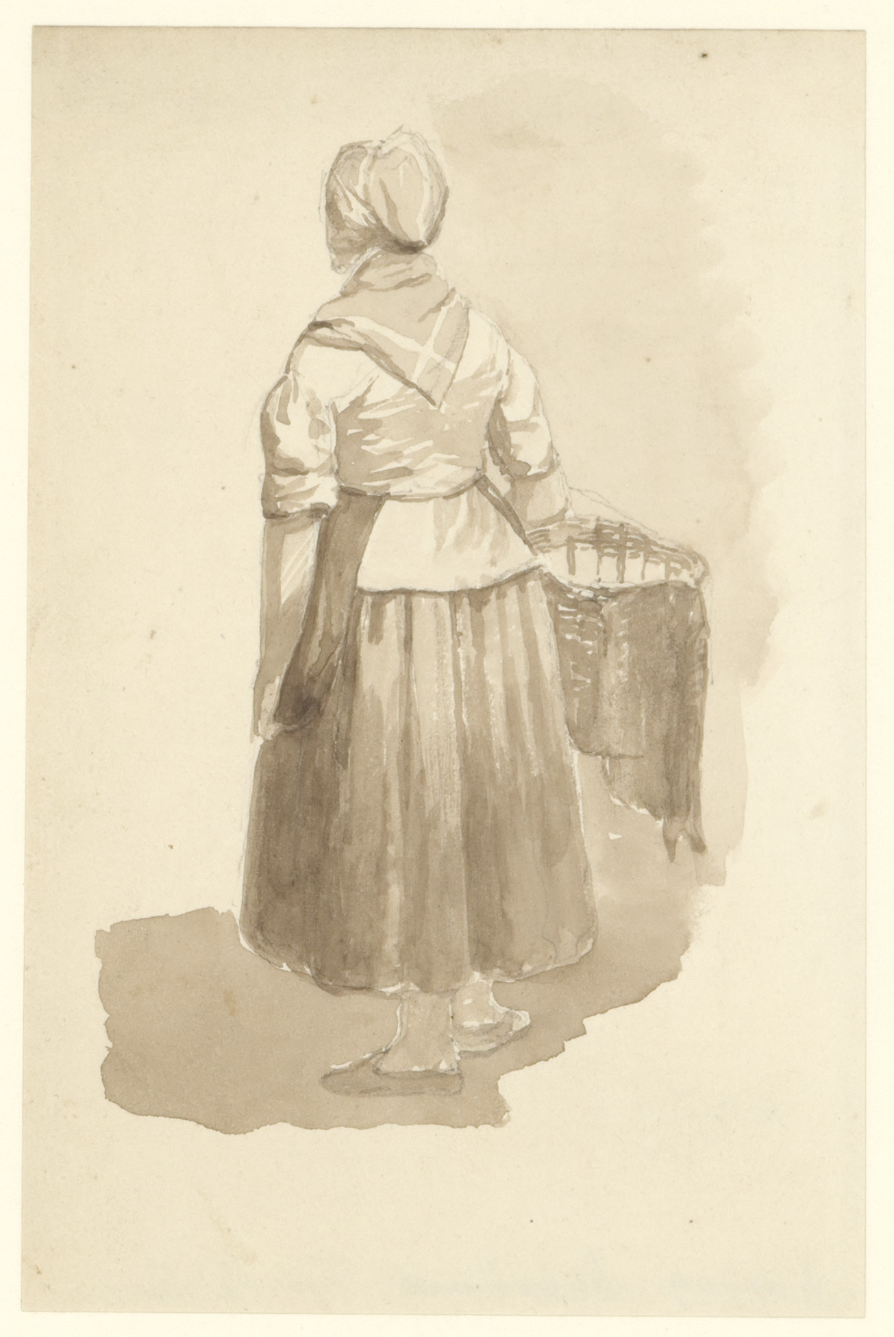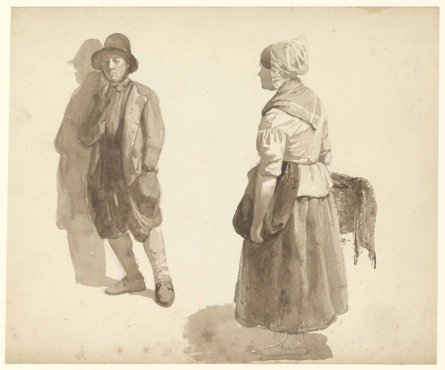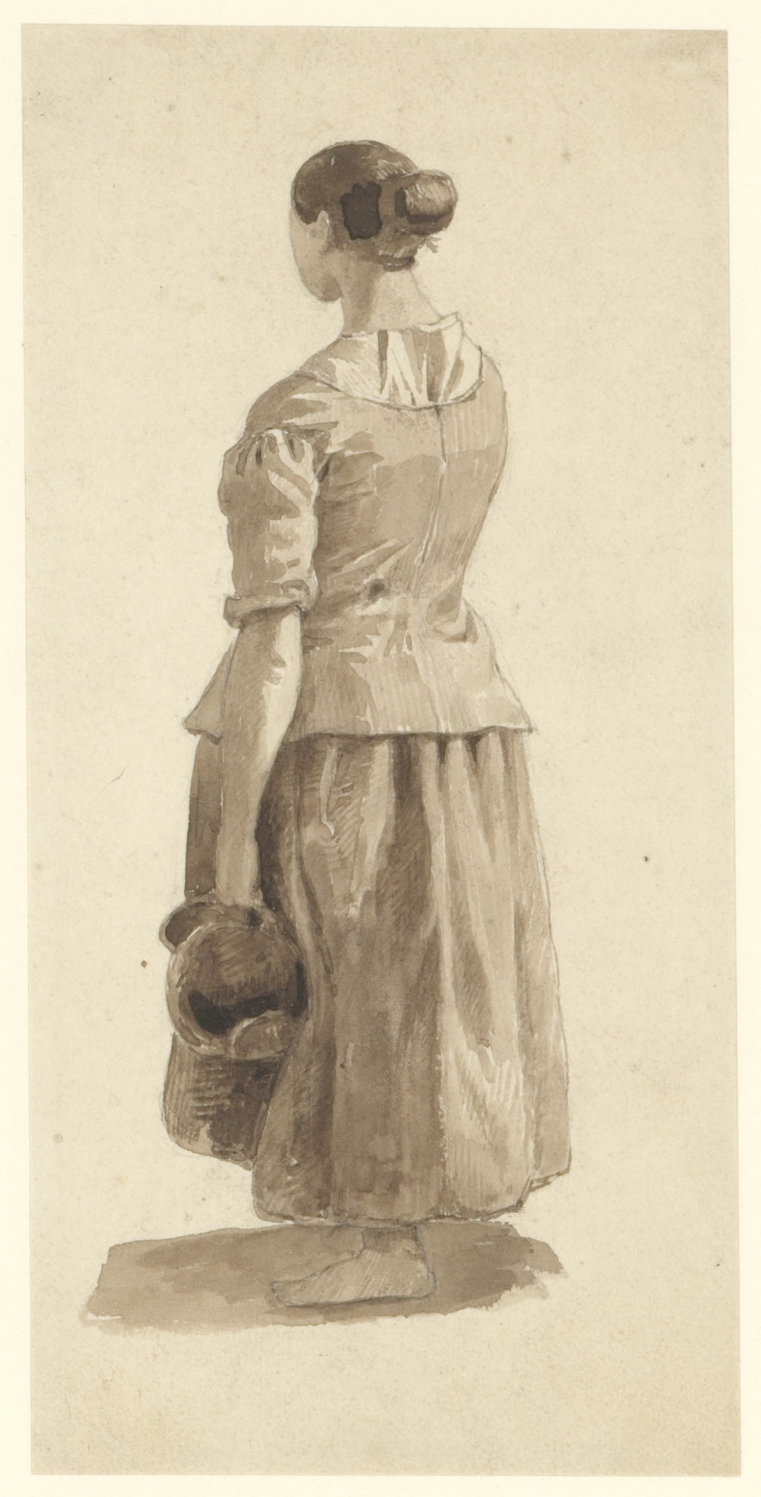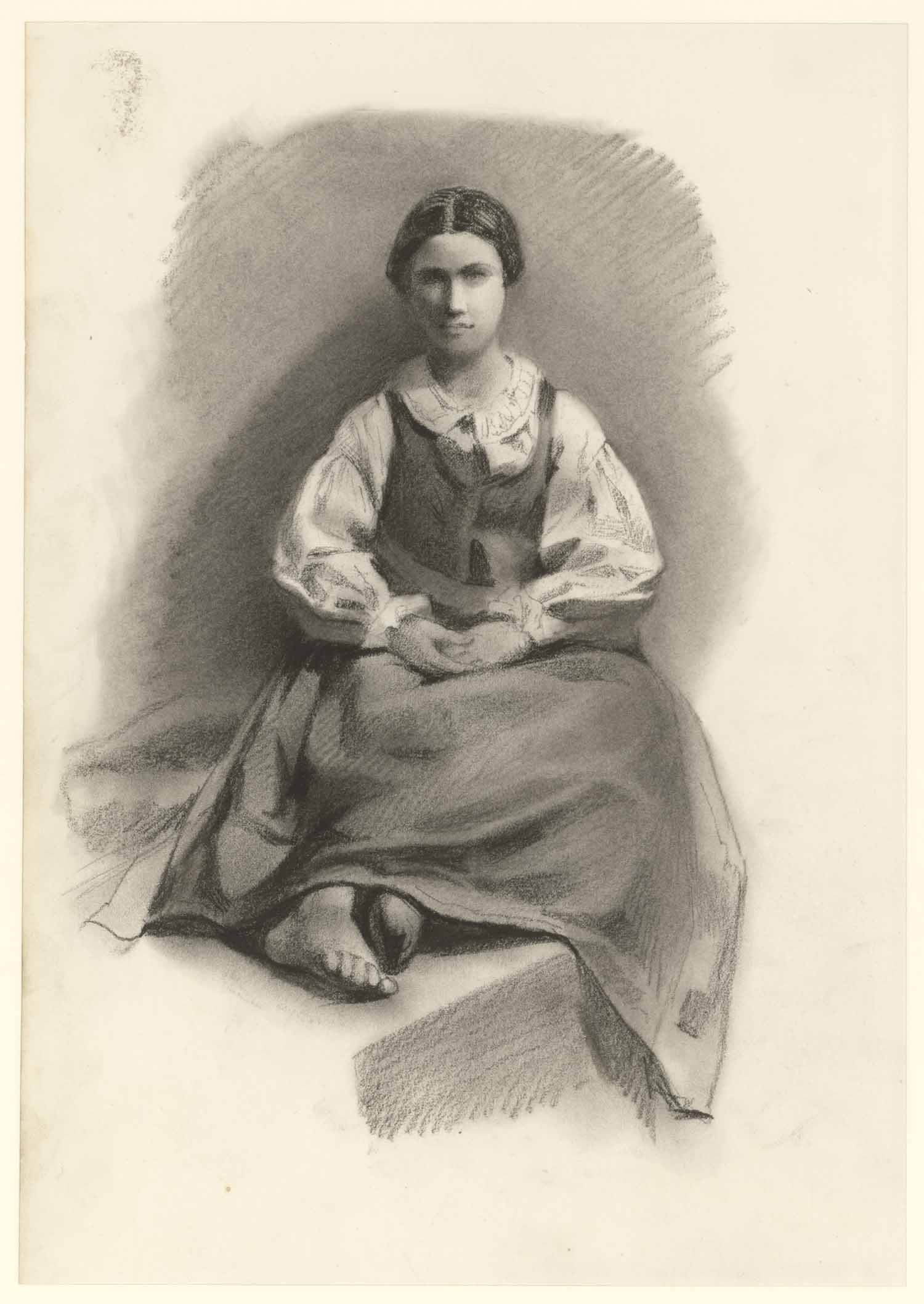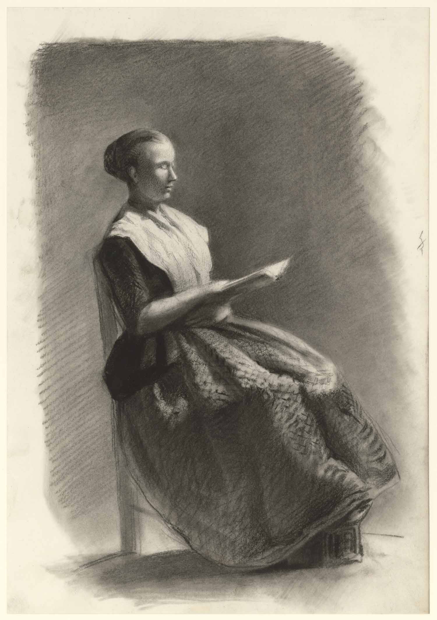Studieblad met vrouwenhoofd en vrouw ten halve lijve