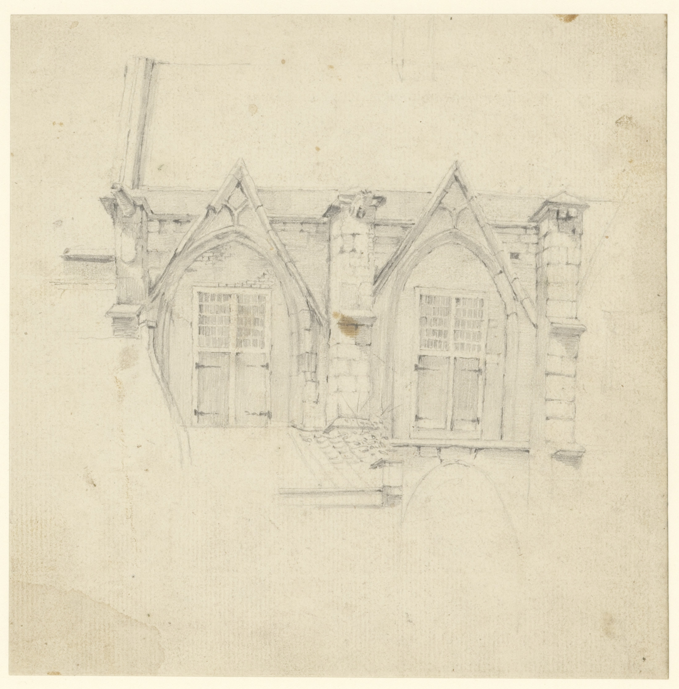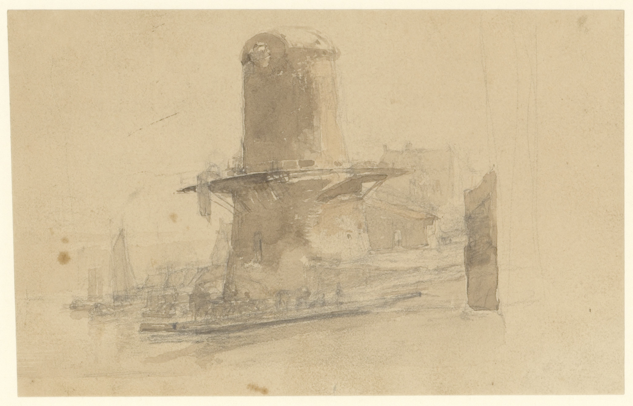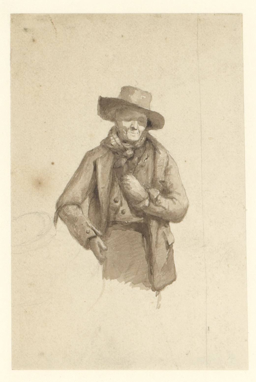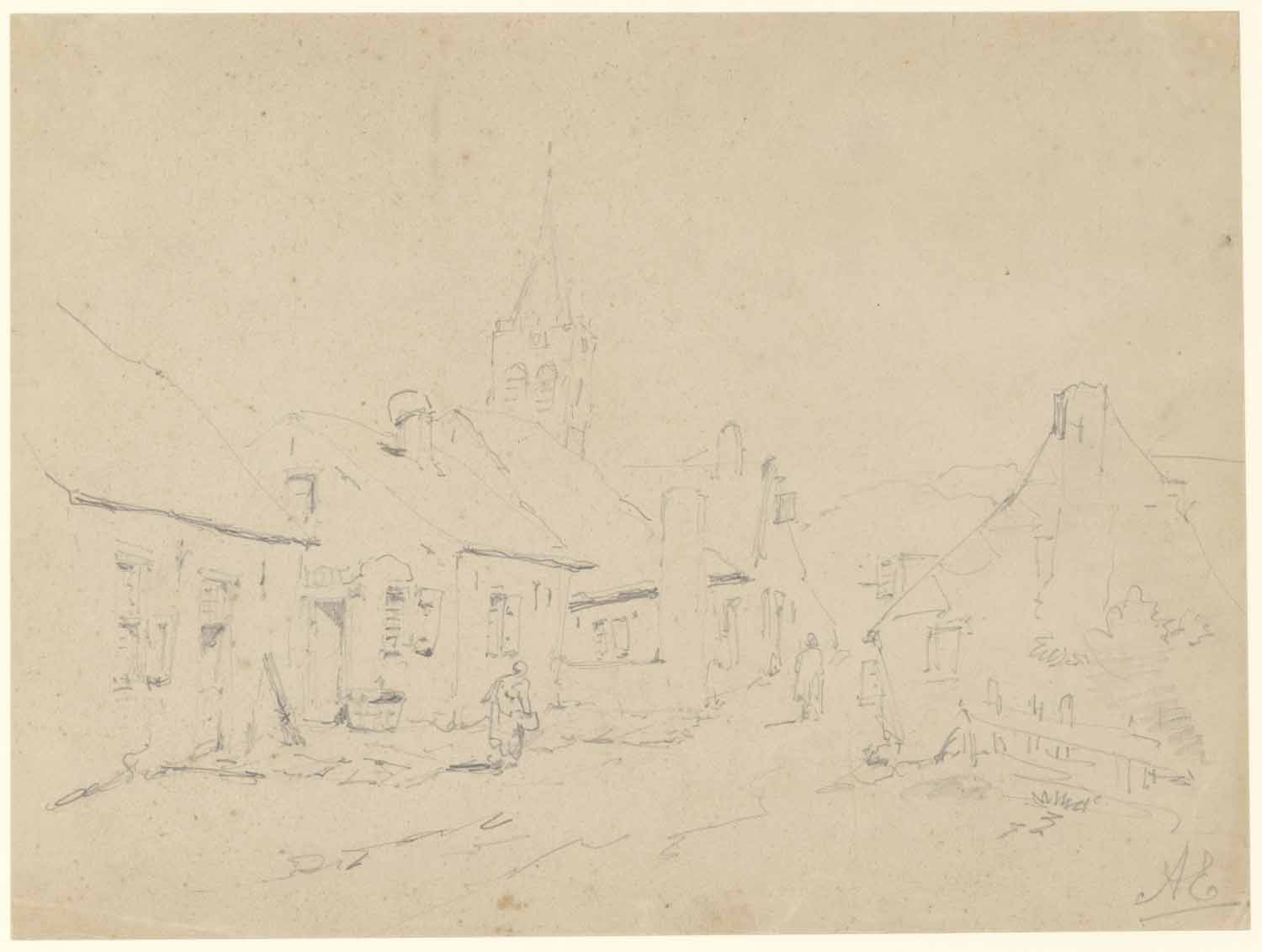 Studieblad. recto: winterlandschap; schuur, wagen me...