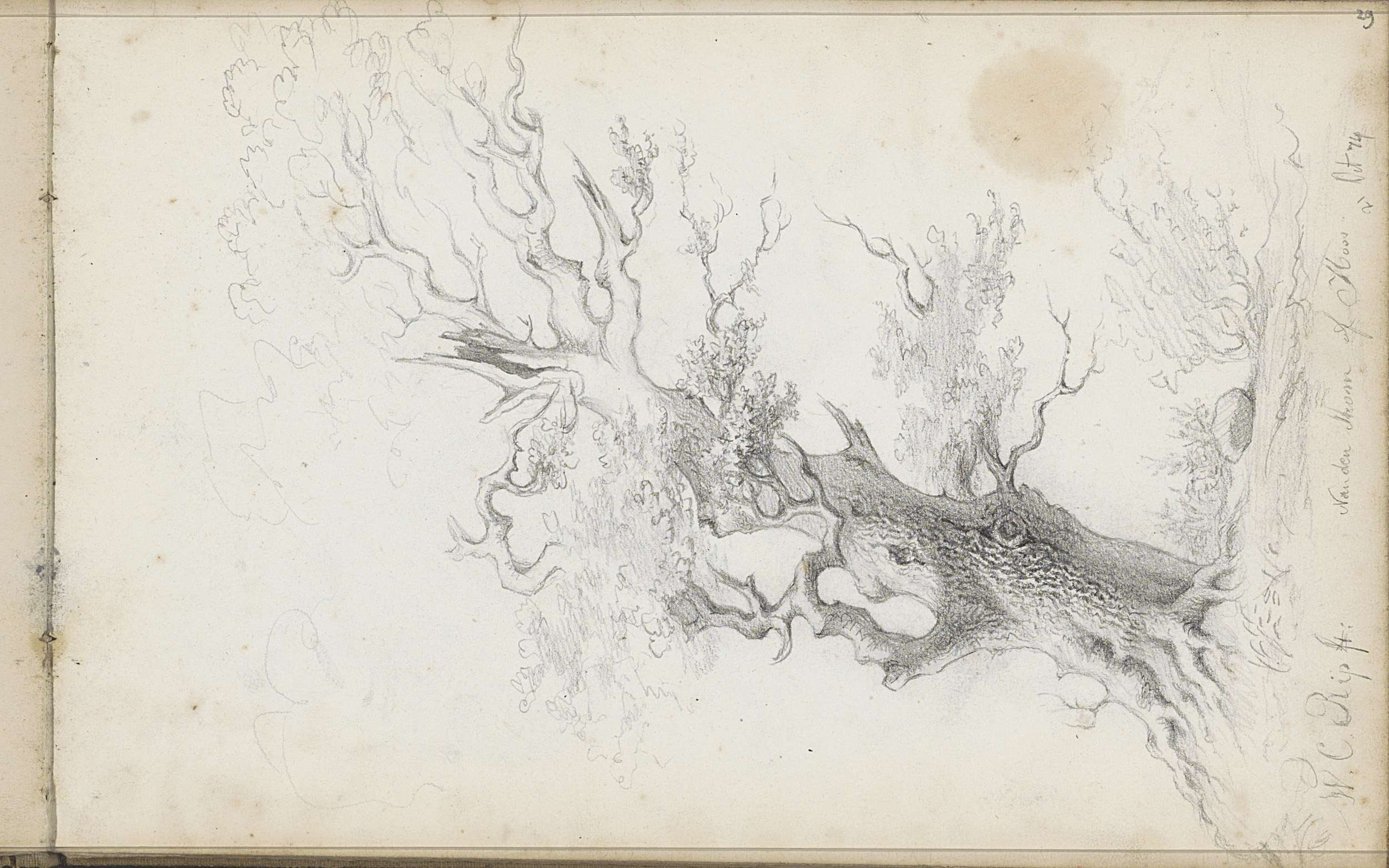 Overhellende boomstam