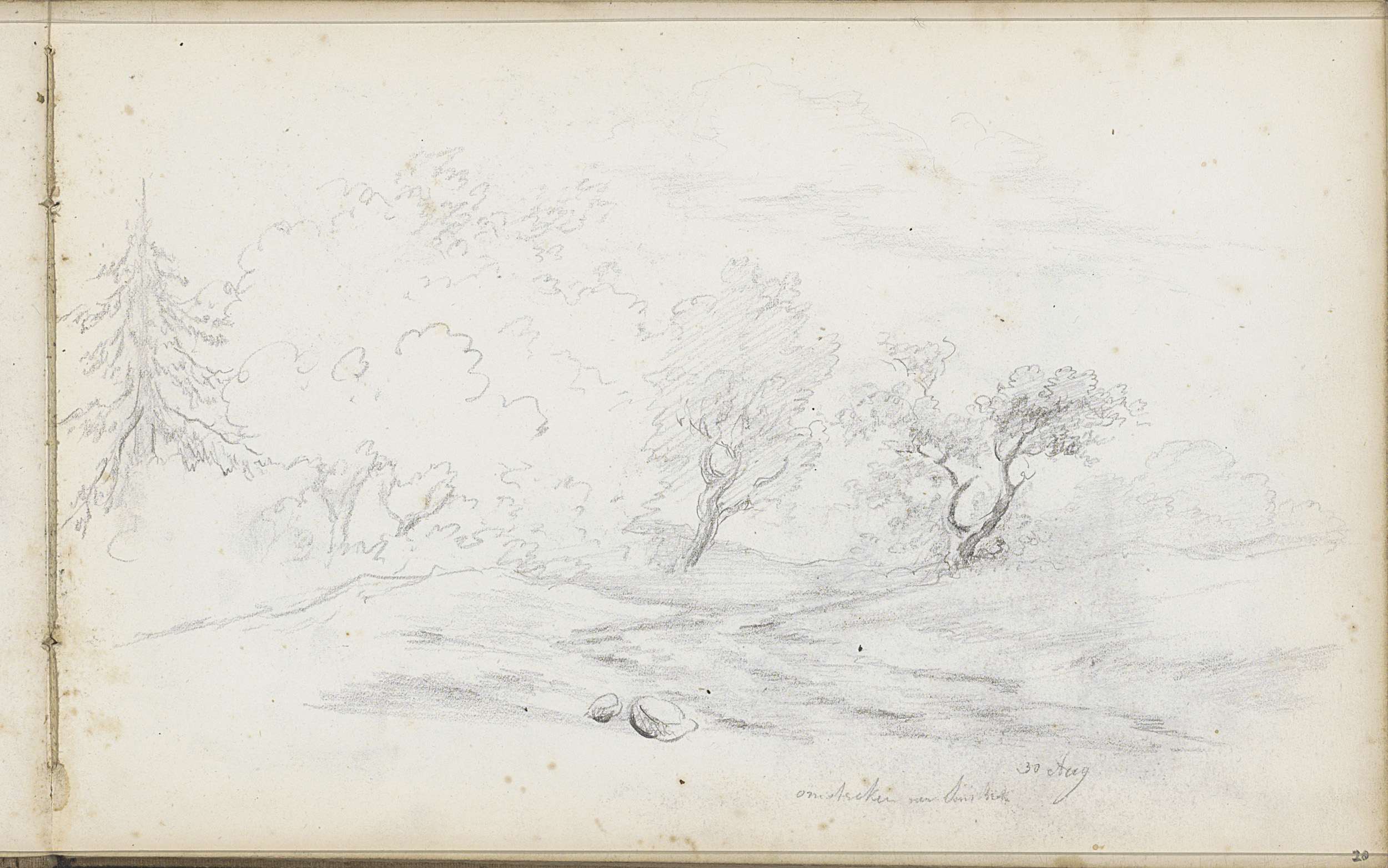 Heuvellandschap met bomen en keien te Kleef