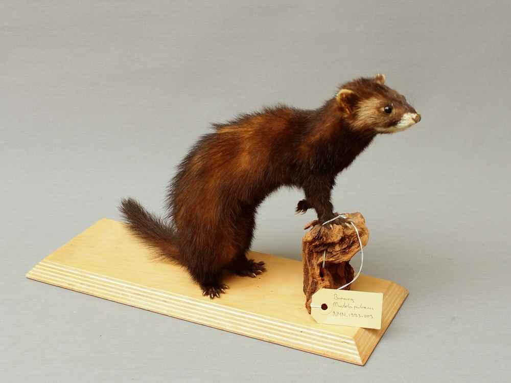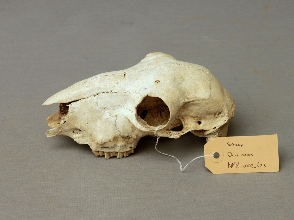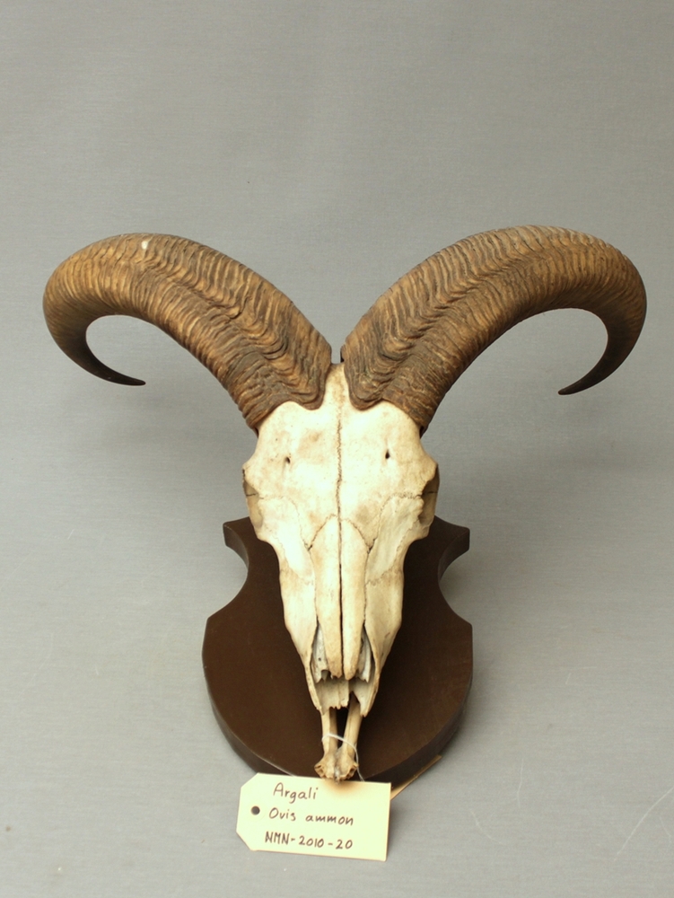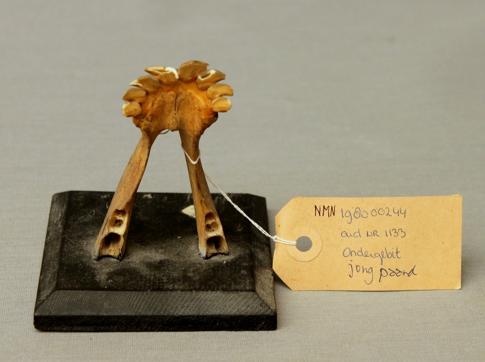 Paard; voorste deel onderkaak; op plank gemonteerd