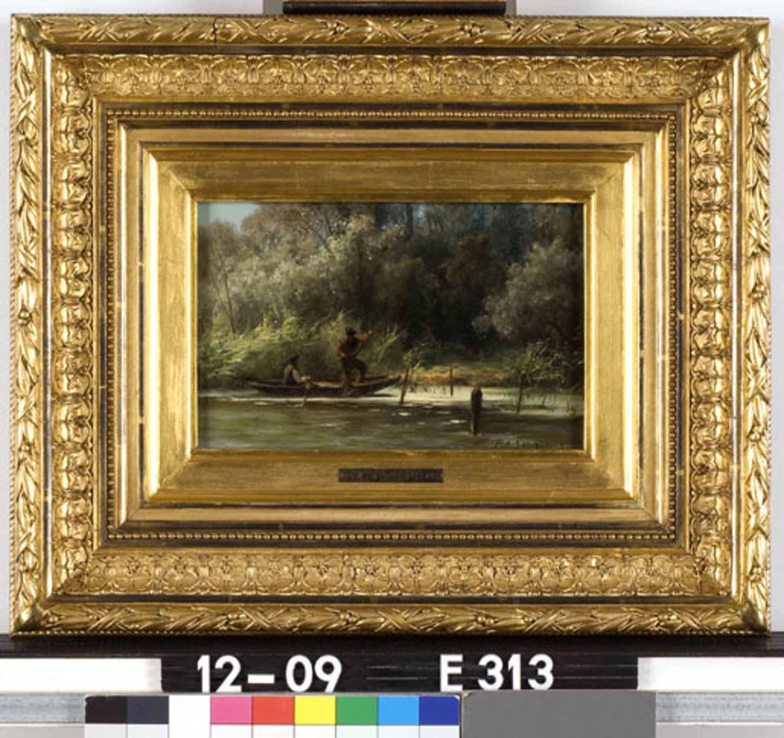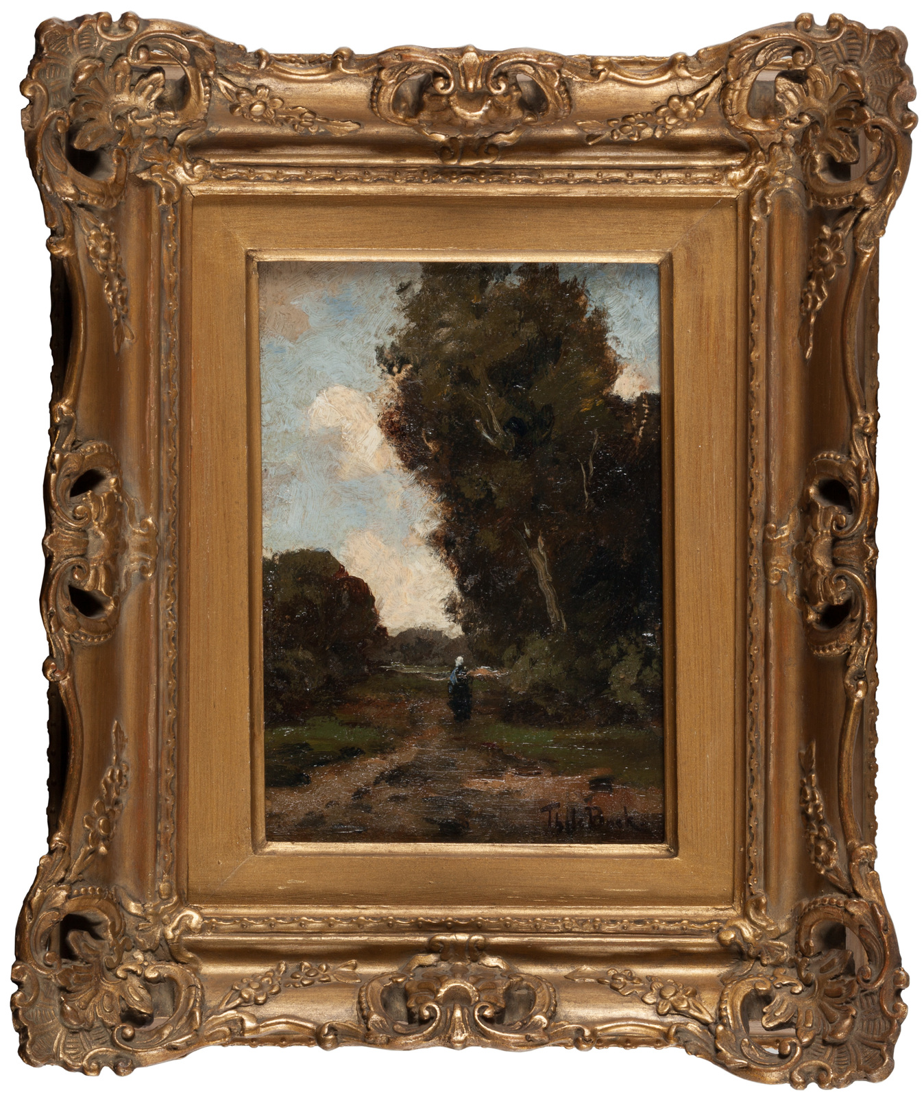 Boslandschap met twee vrouwen bij een sloot