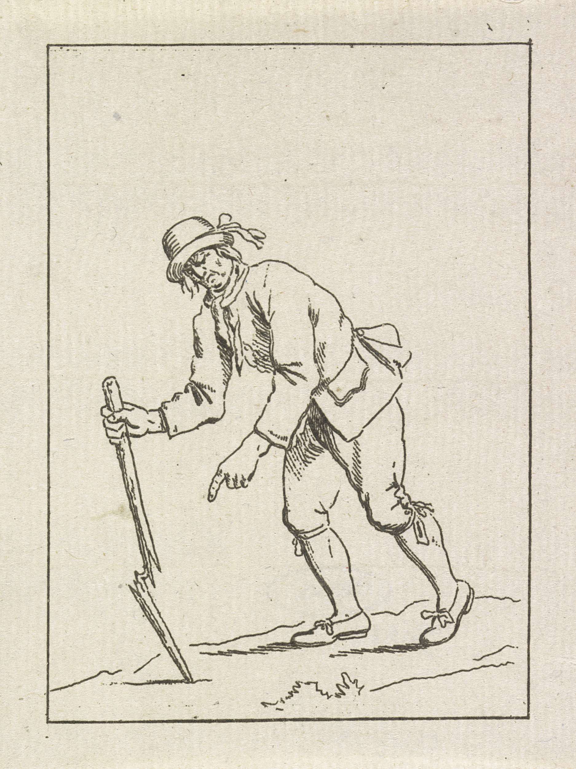 Voorover vallende man die leunt op een gebroken stok...