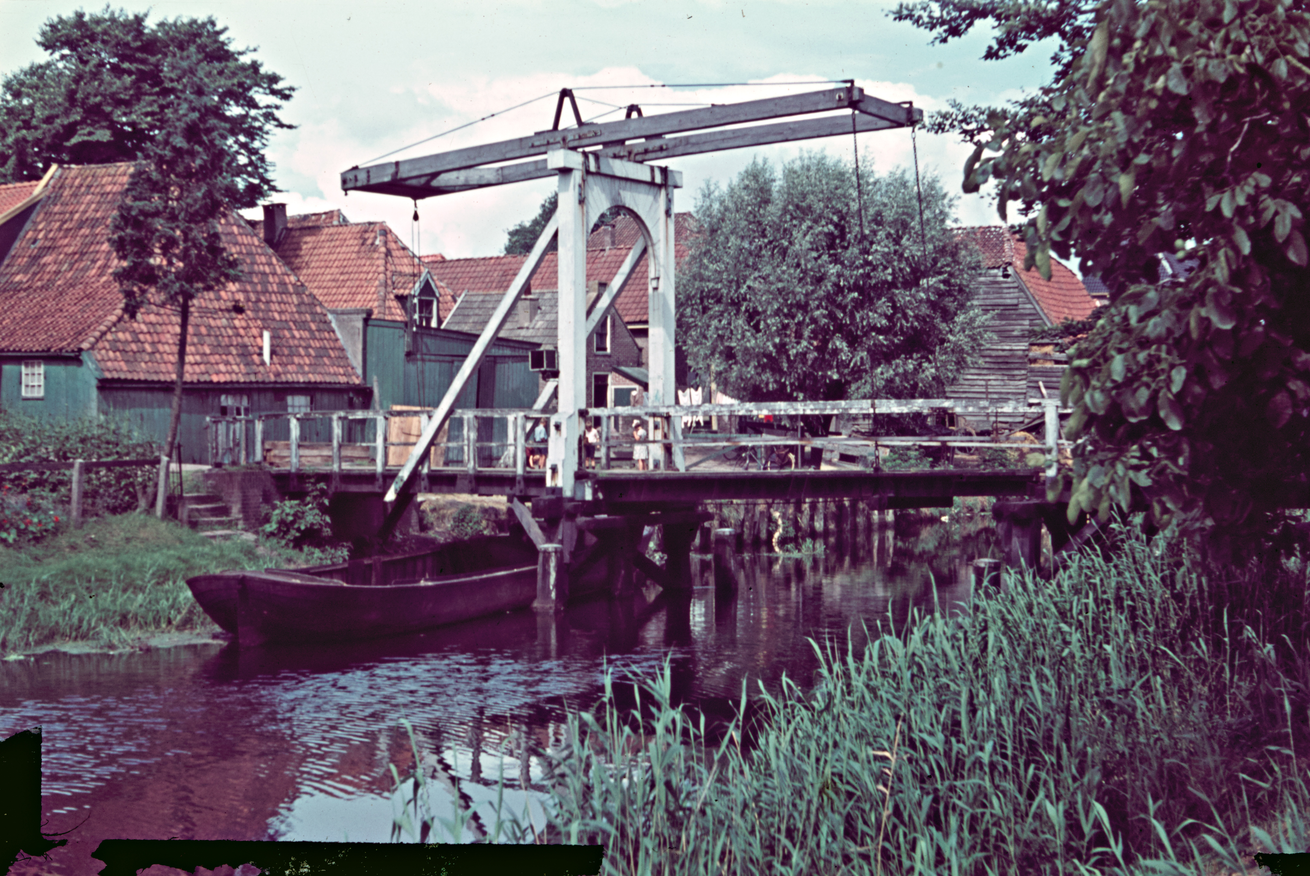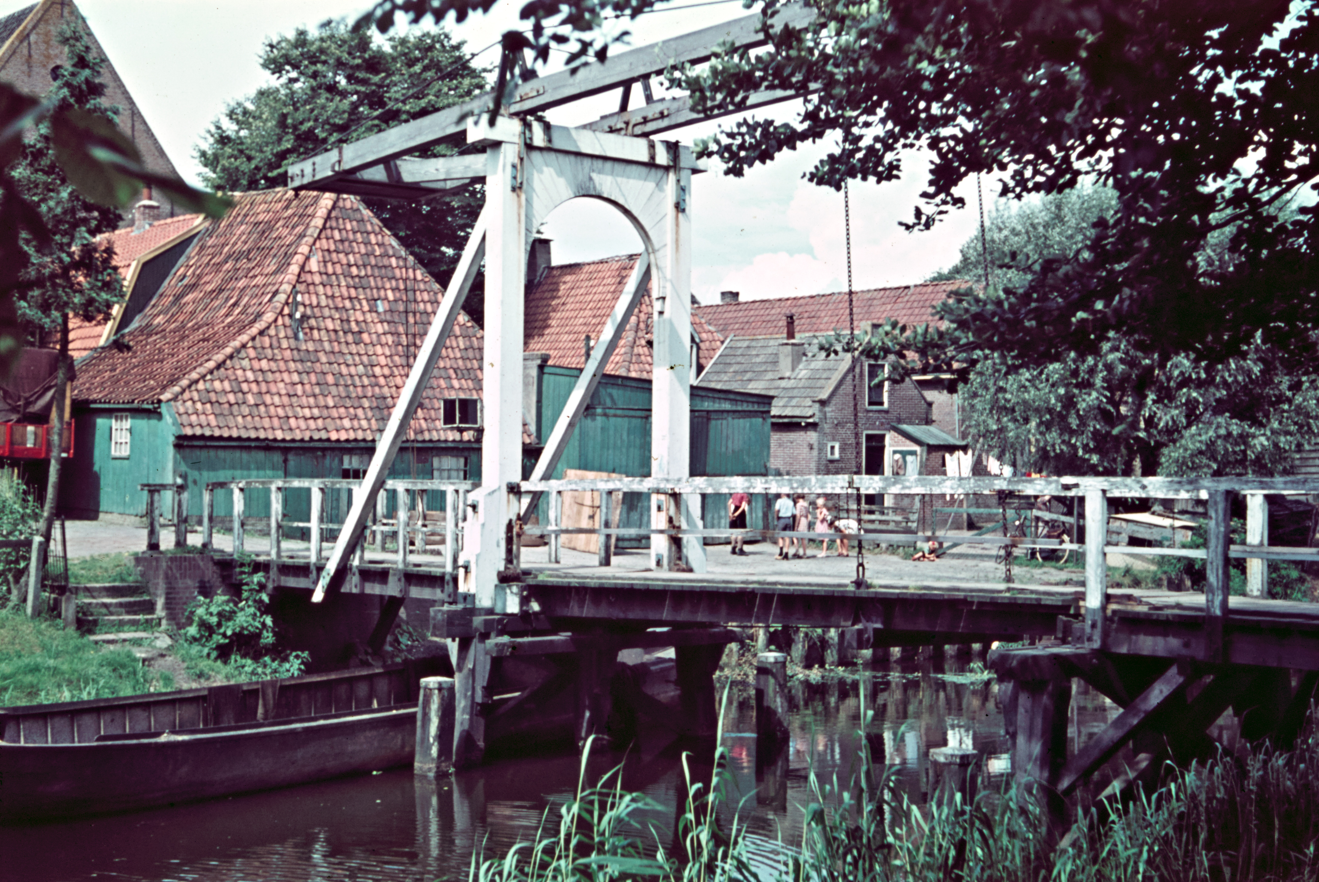 Schuit onder balansbrug