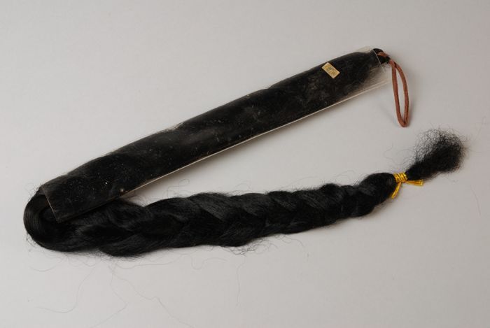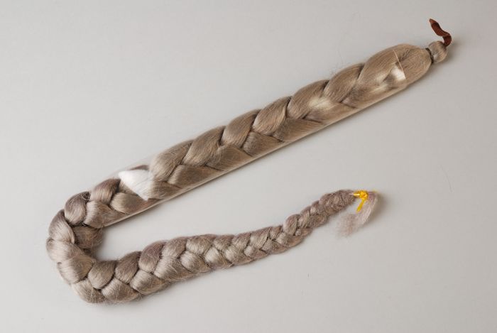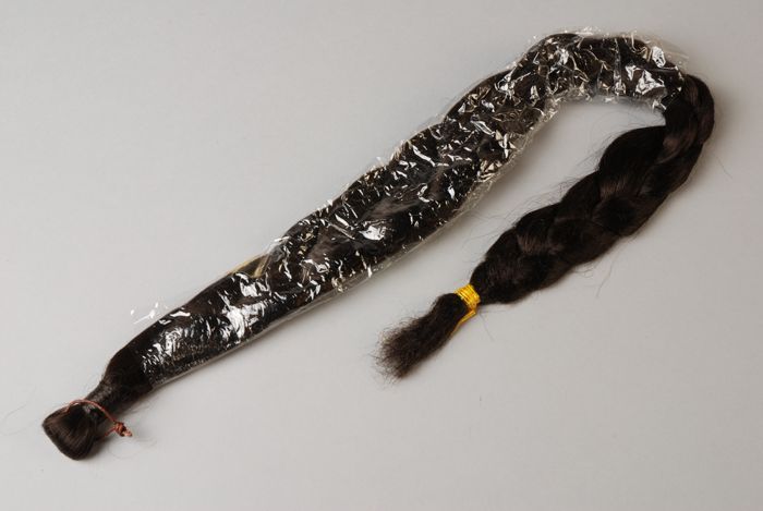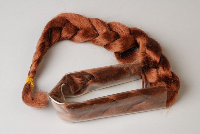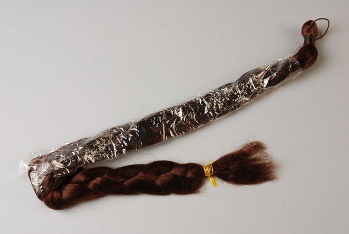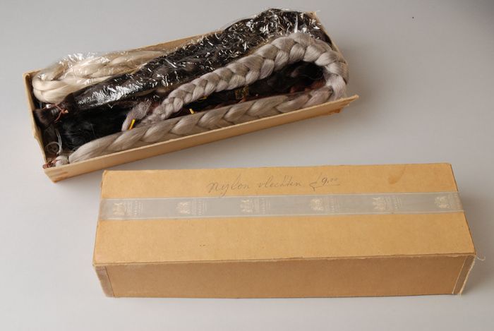 Losse haarvlecht, in twee in elkaar geschoven dozen ...