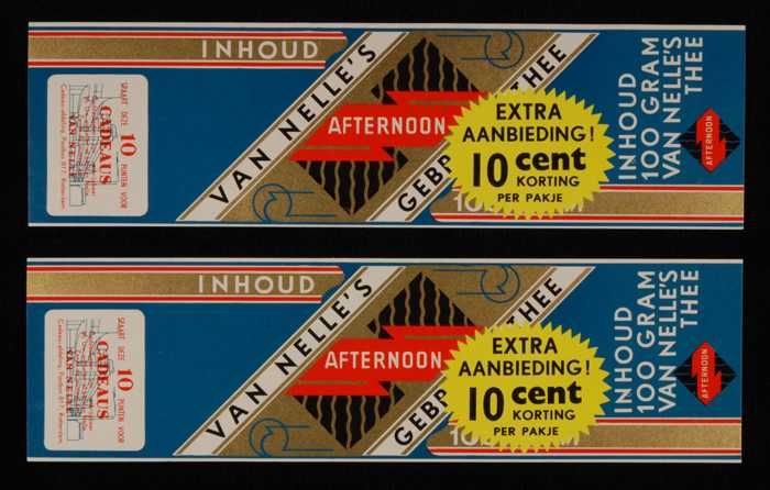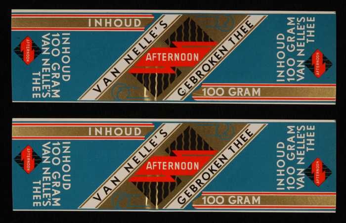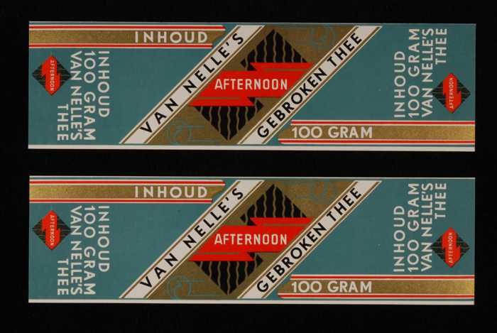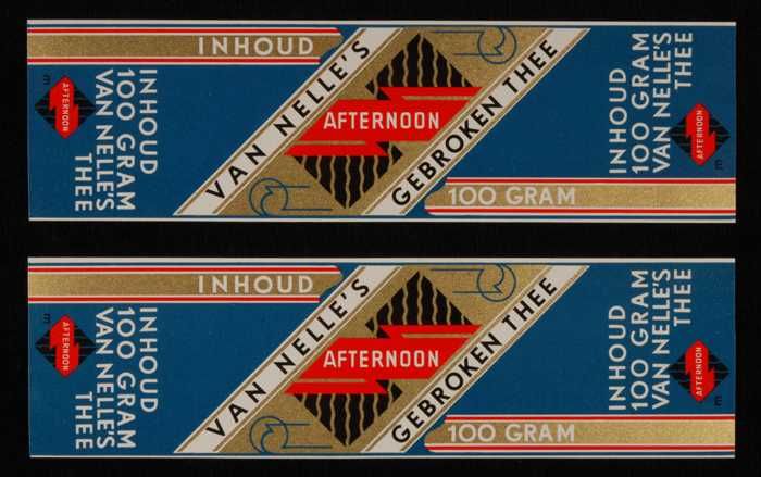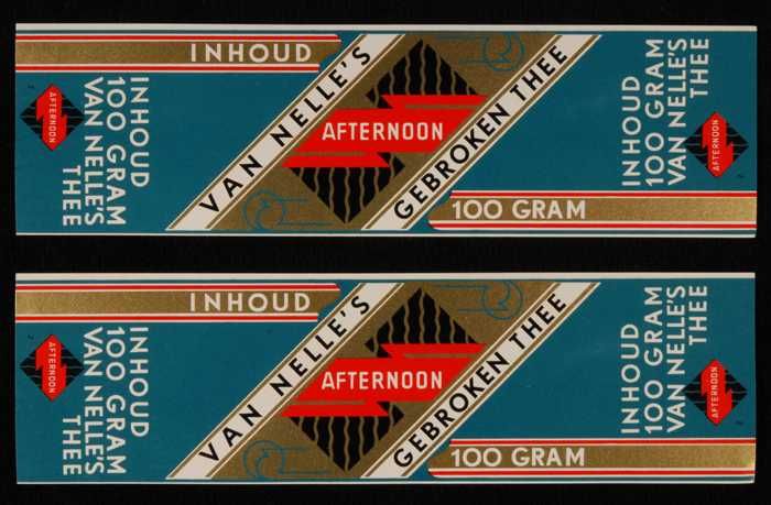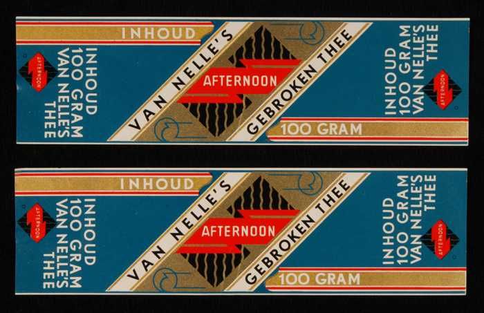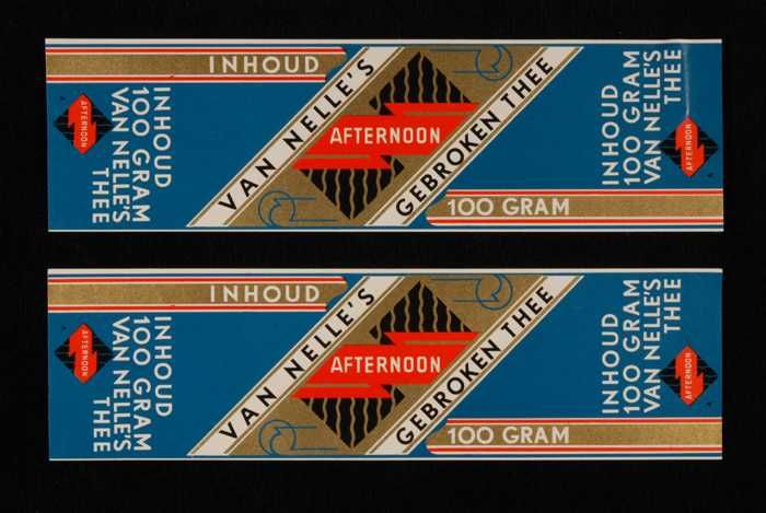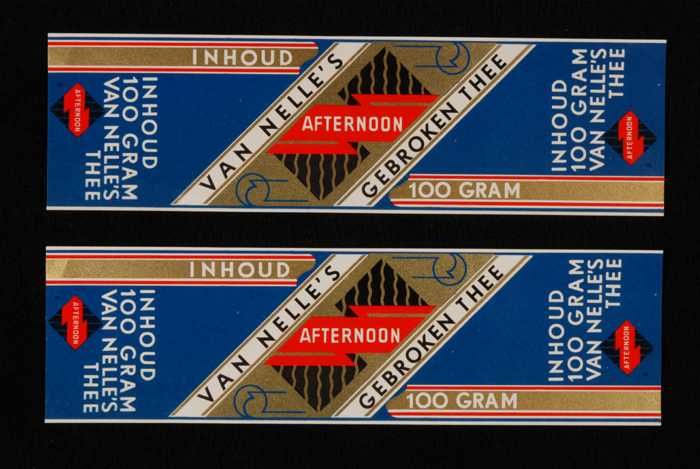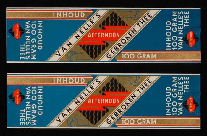 Twee blauw, goud en rode labels VAN NELLE'S AFTERNOO...