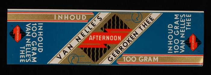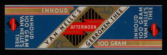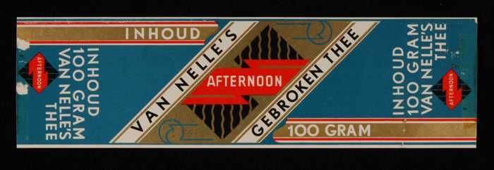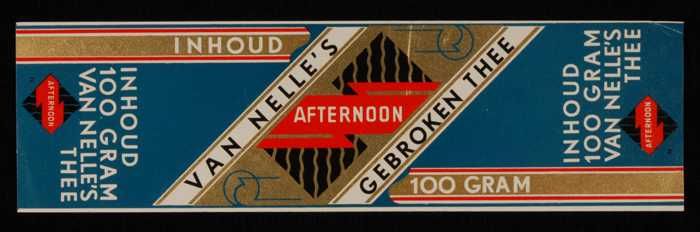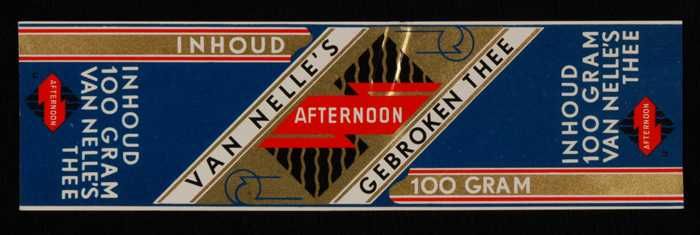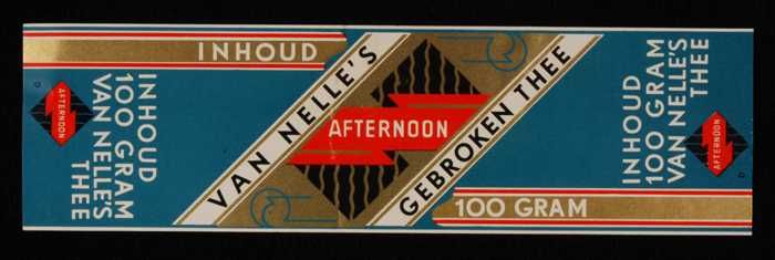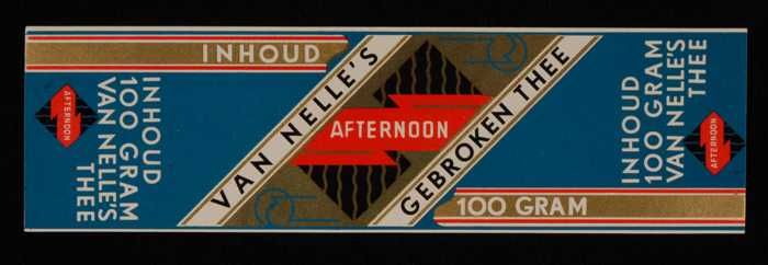 Blauw, goud en rood label VAN NELLE'S AFTERNOON THEE...