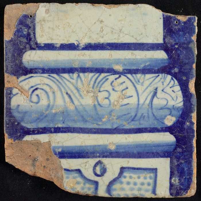 Tegel van schoorsteenpilaster, blauw op wit, onderzi...
