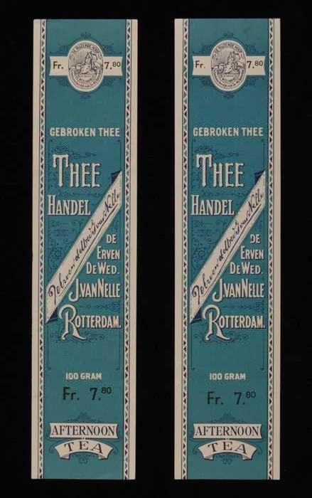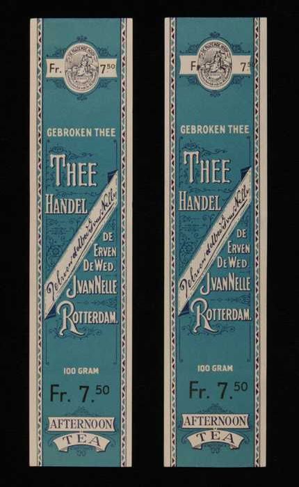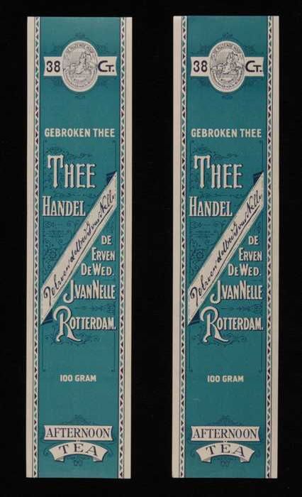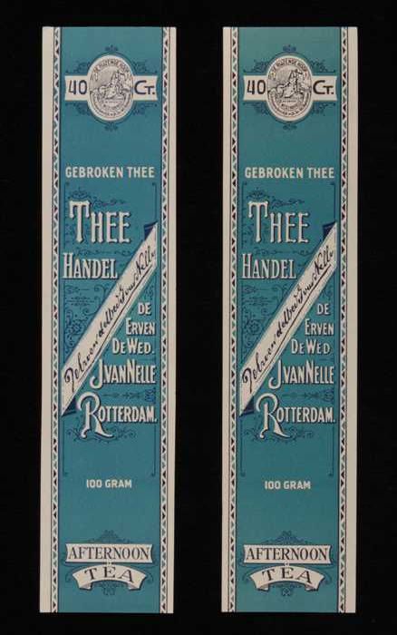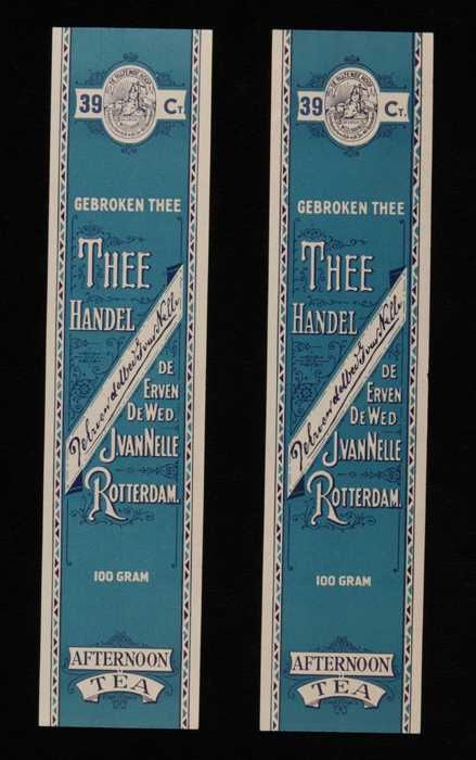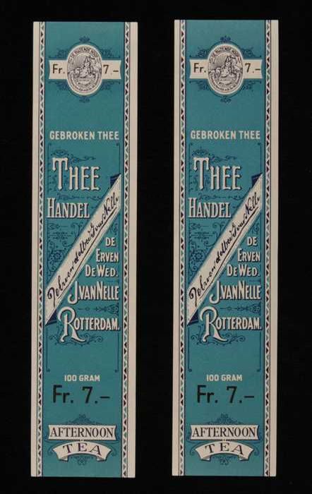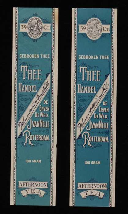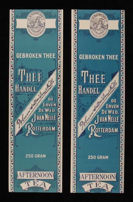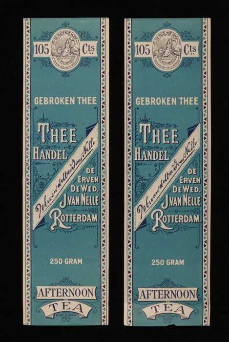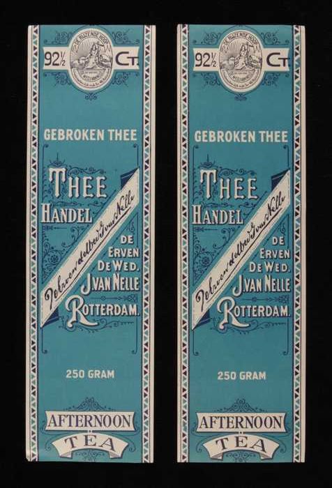Twee blauwe, papieren labels VAN NELLE AFTERNOON THE...