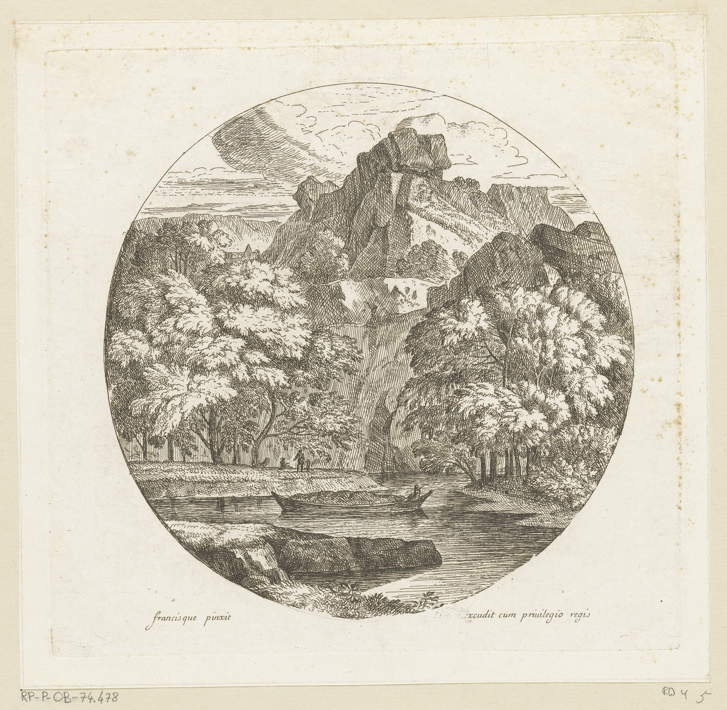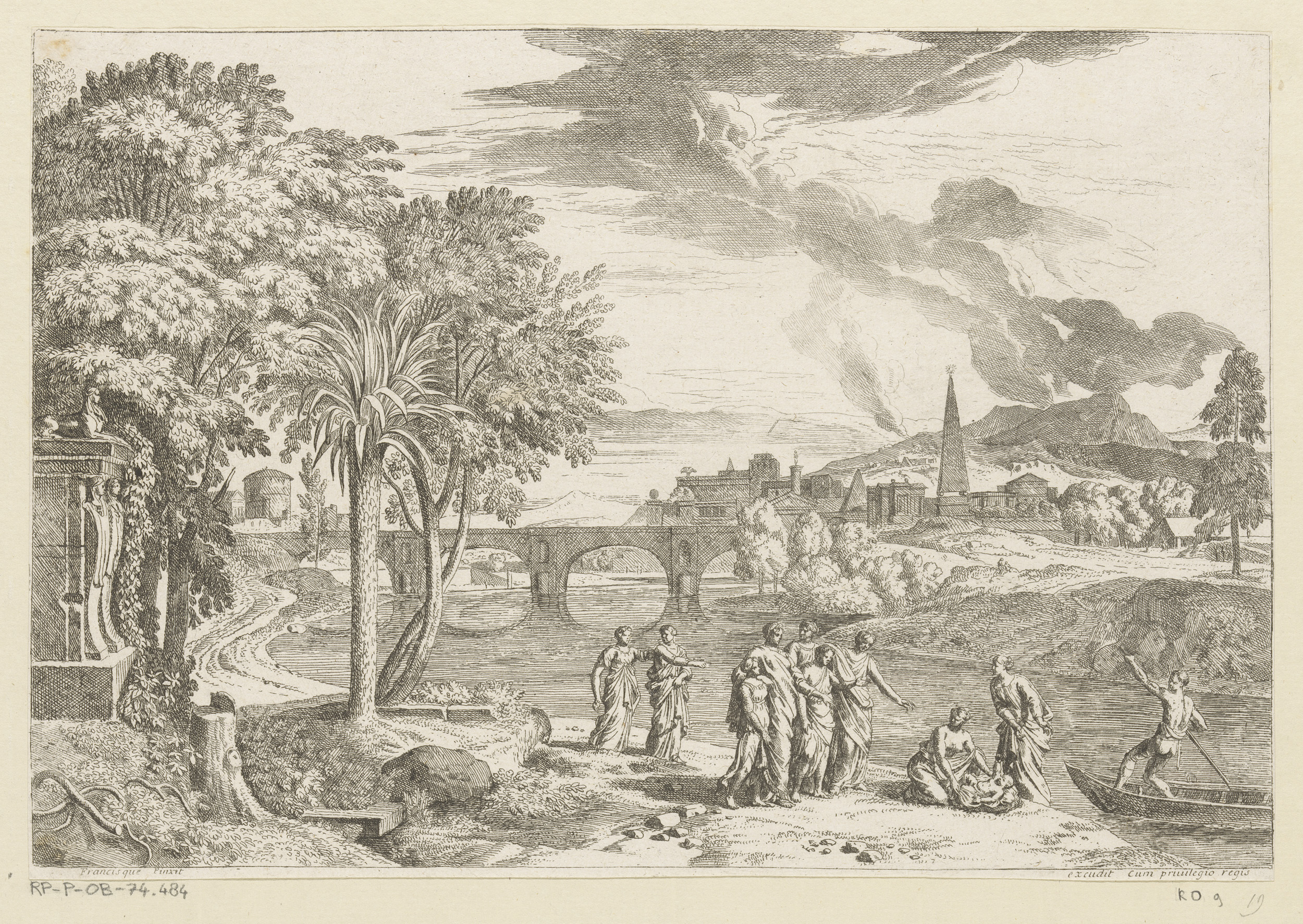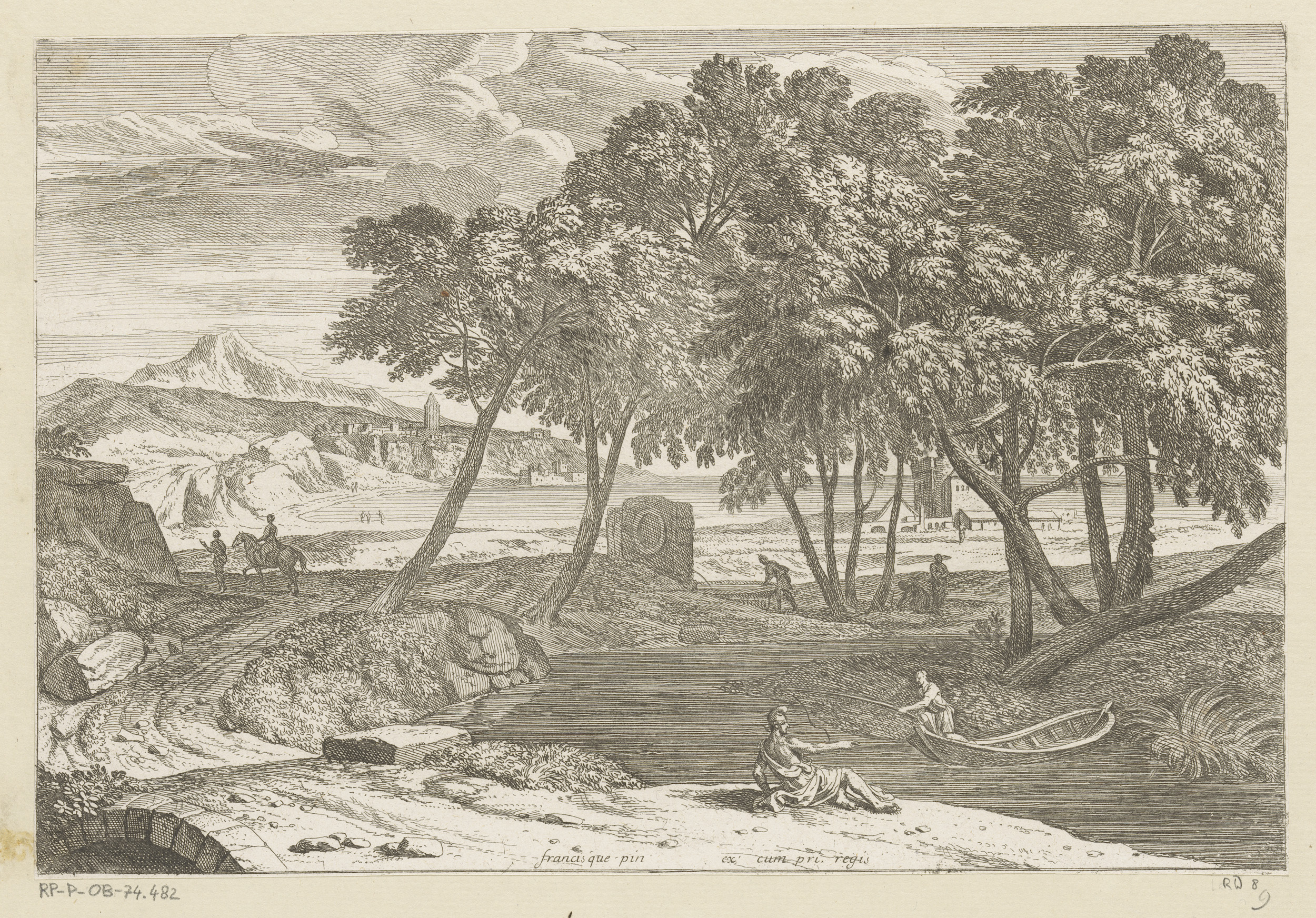 Arcadisch landschap met een visser in een boot