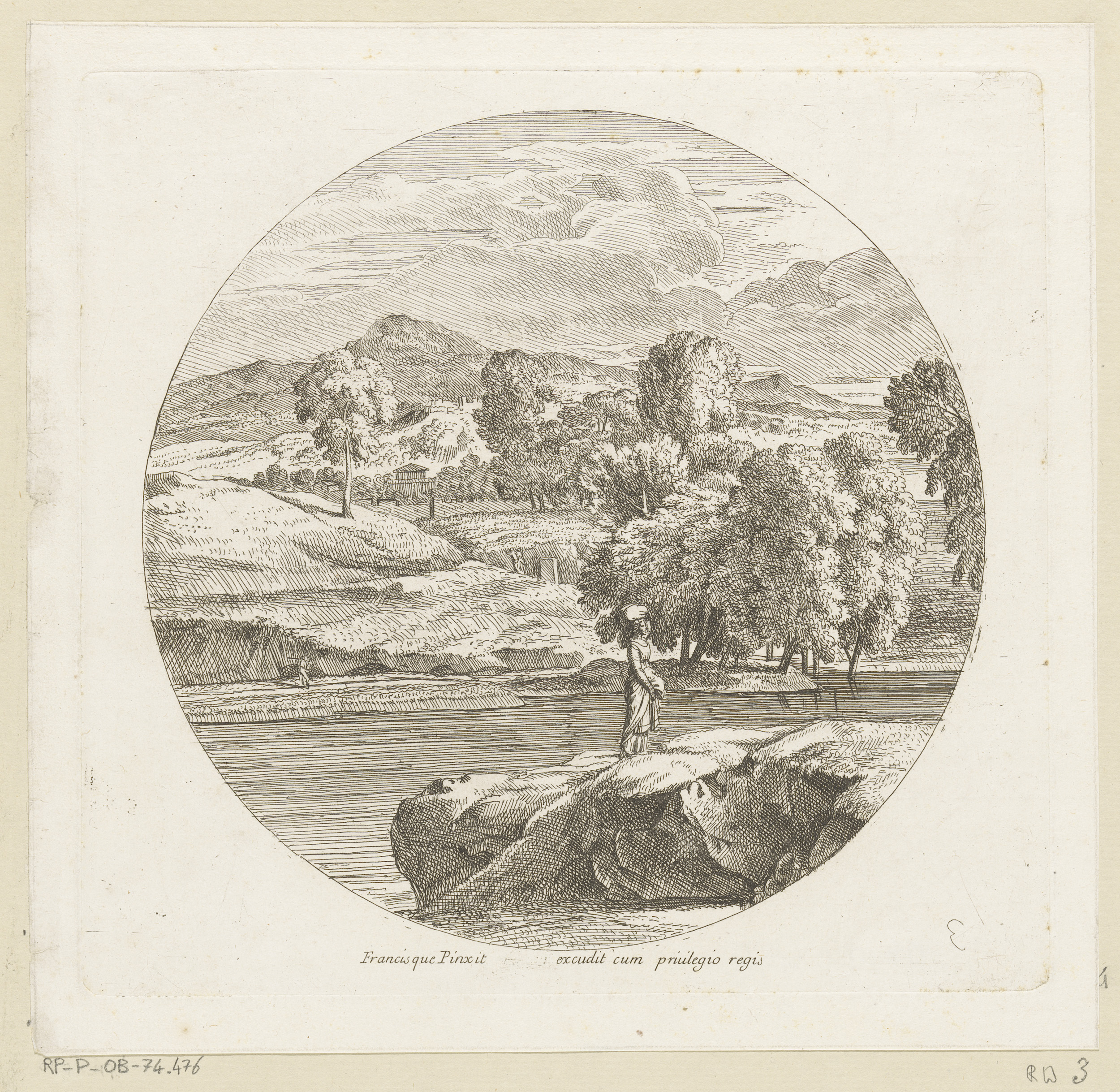 Arcadisch rivierlandschap met een jonge vrouw met ee...