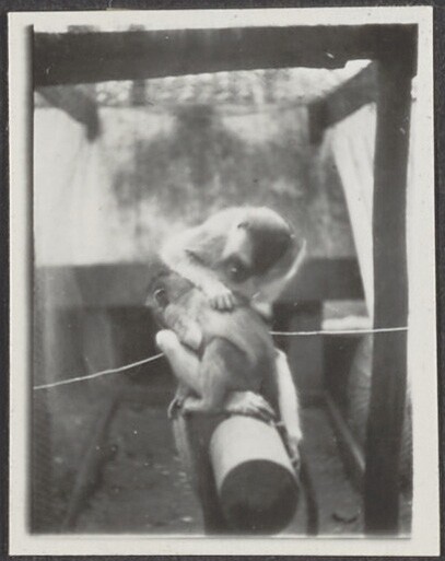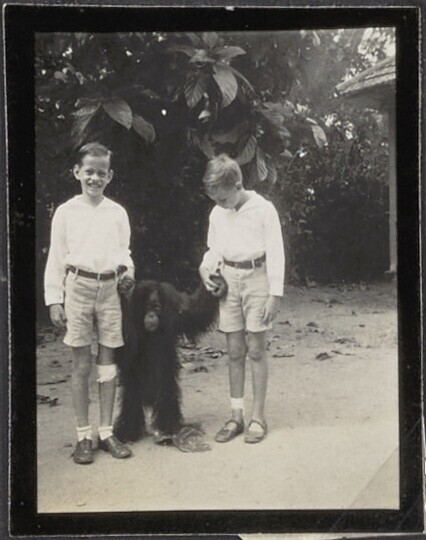 De broers Henk en Hans Japing met een orang-oetang i...
