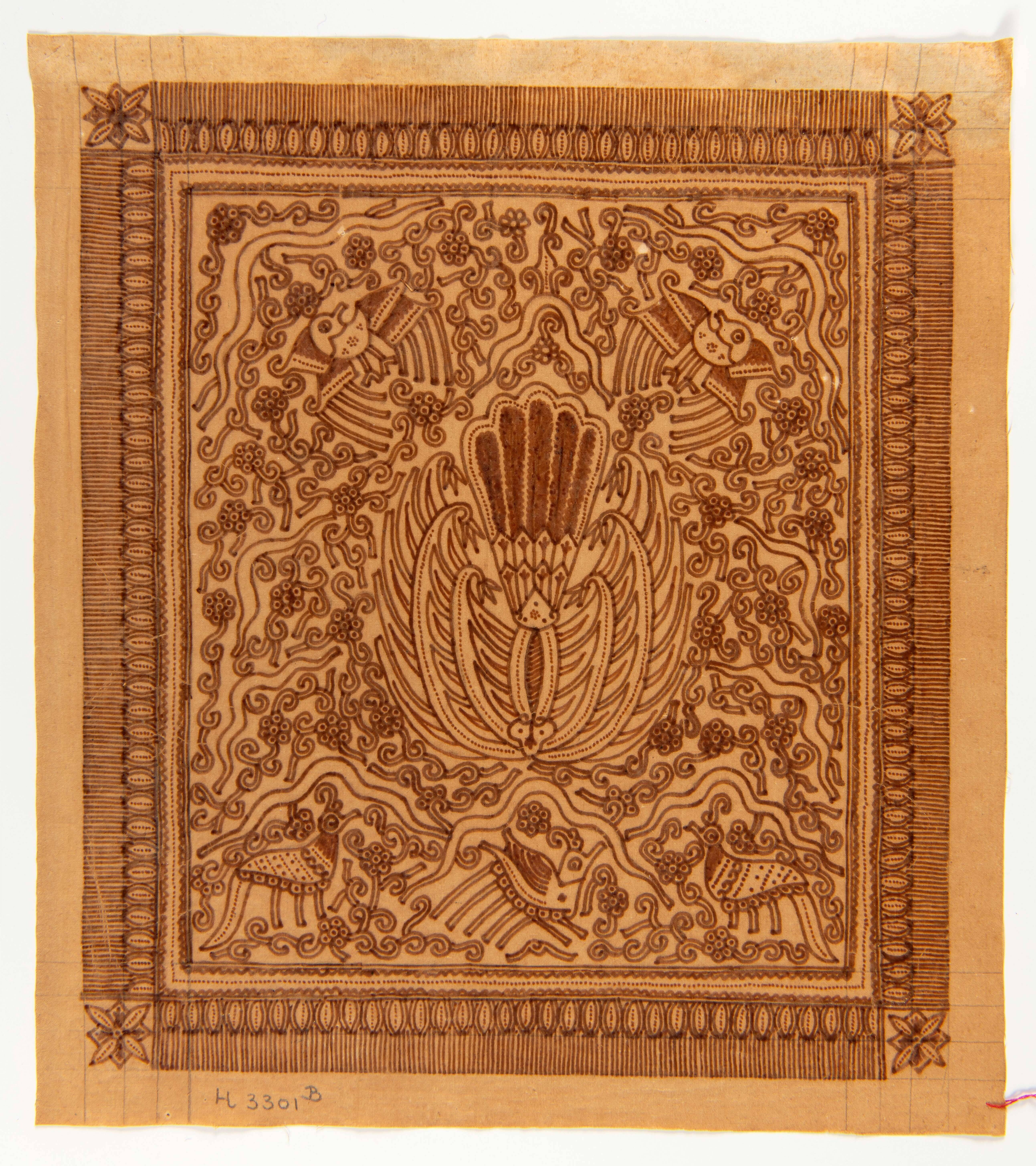 Katoenen doek met wastekening in het rusak-motief, h...