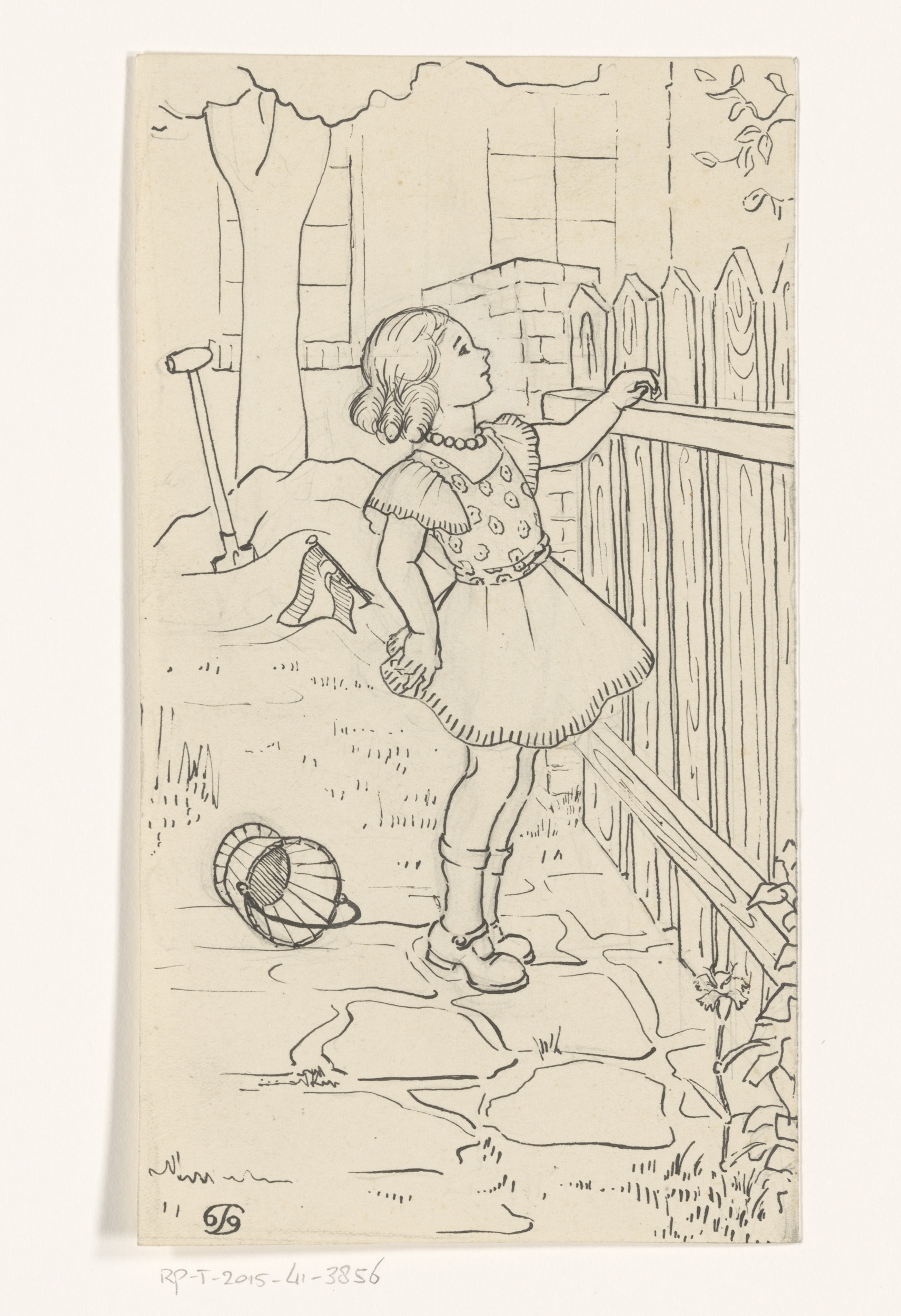 Meisje kijkt over een hek