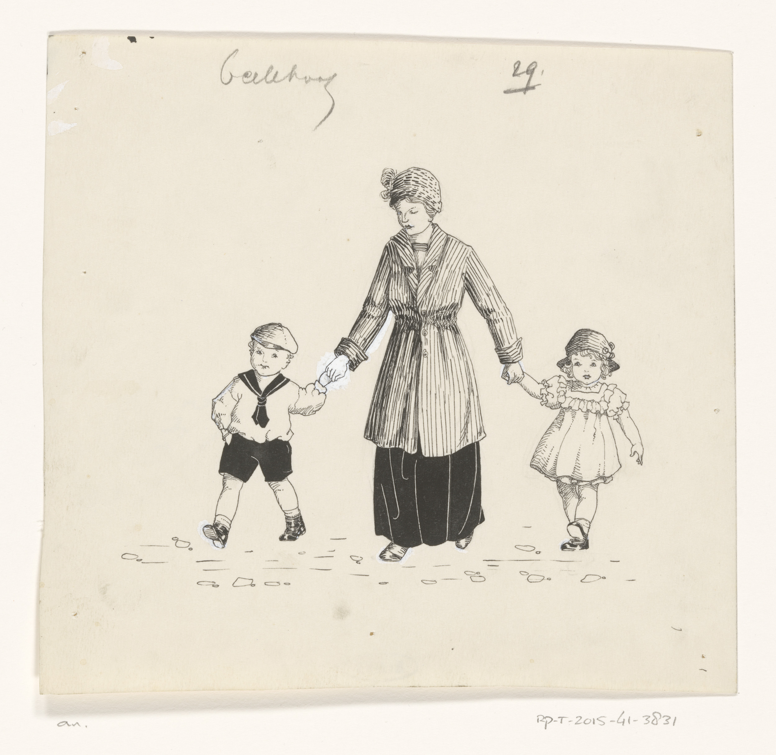 Moeder met een jongen en meisje aan de hand