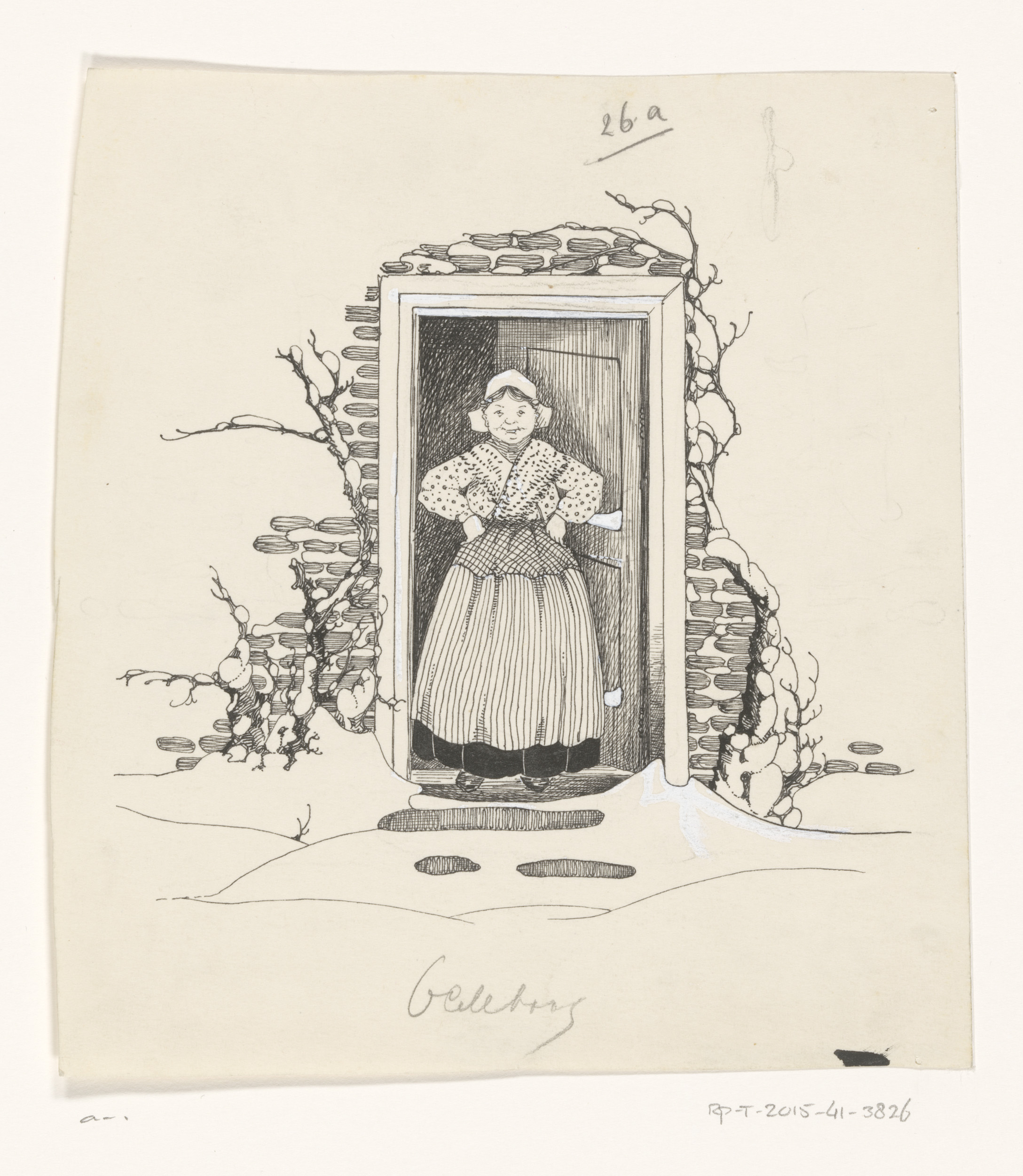 Vrouw in klederdracht in een deuropening