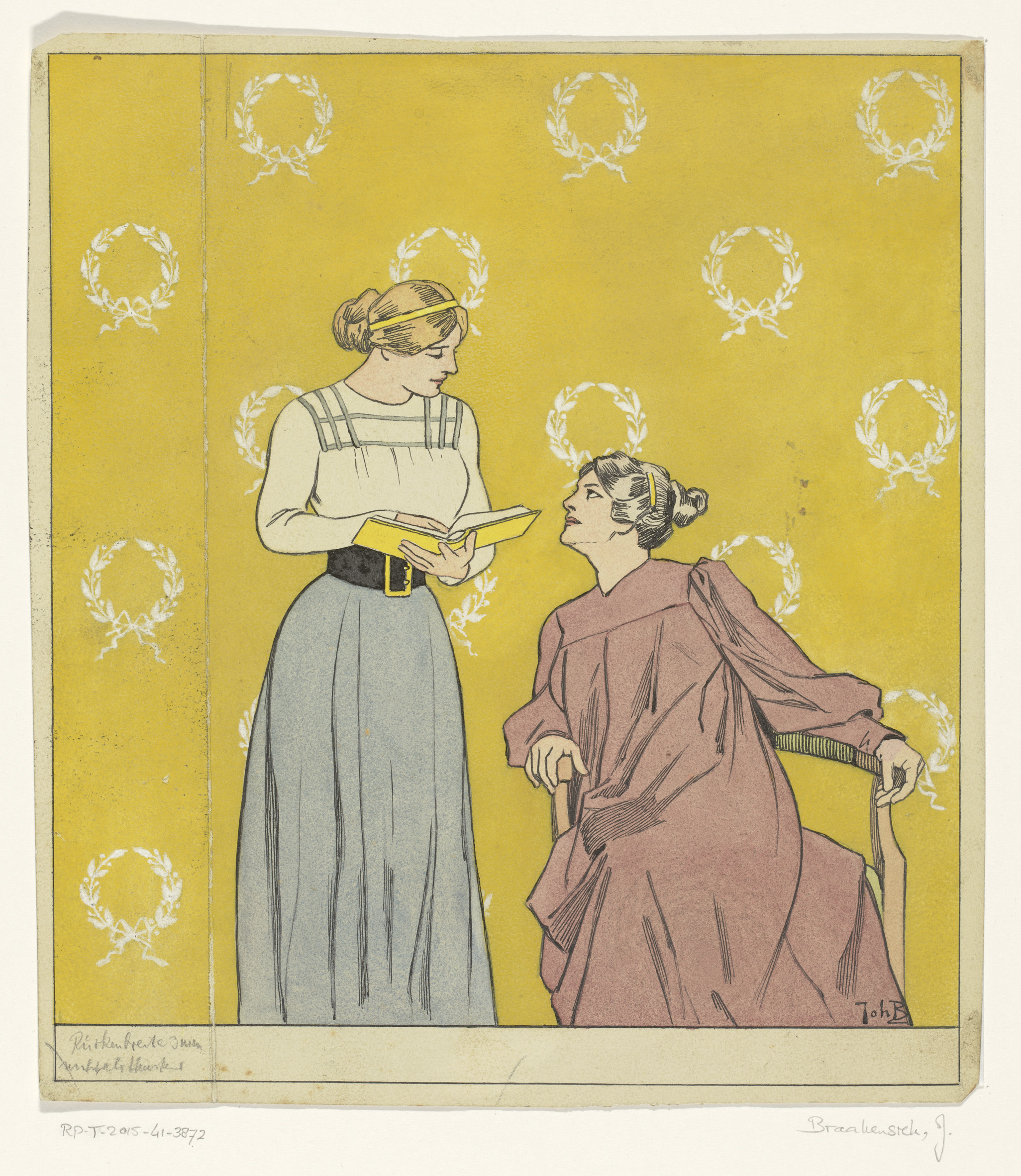 Bandontwerp met twee vrouwen met een boek