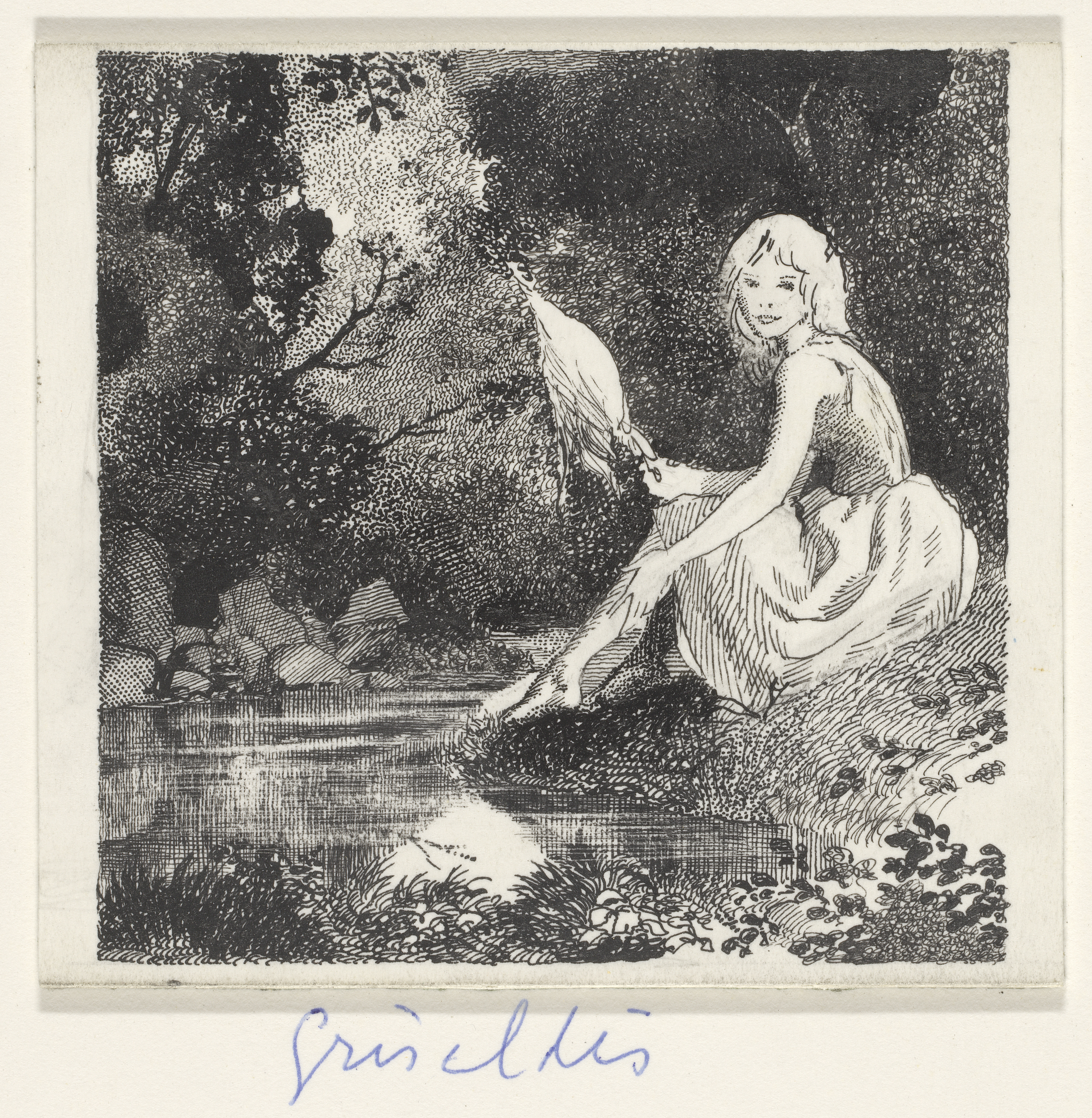 Griseldis zittend bij een beek