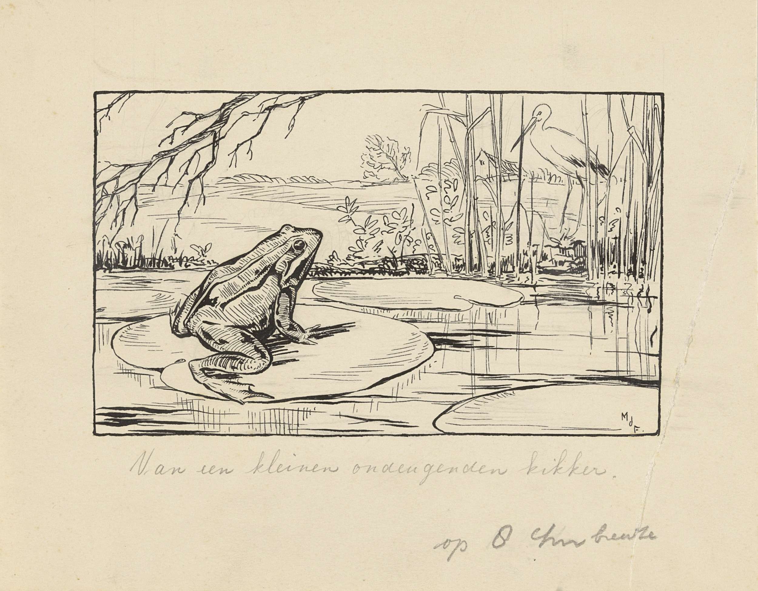 Kikker op een waterlelie in een plas