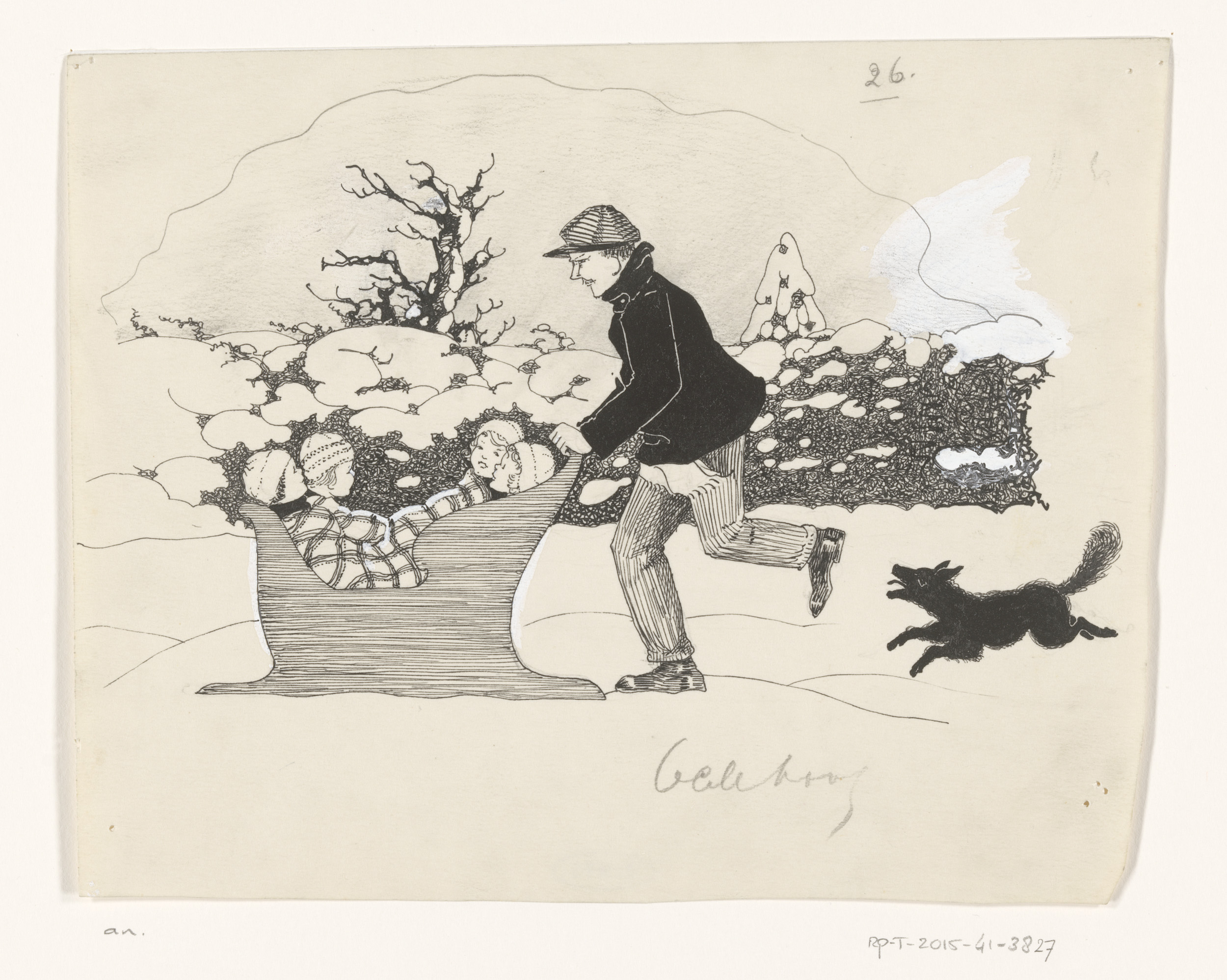 Man vervoert kinderen in een slee