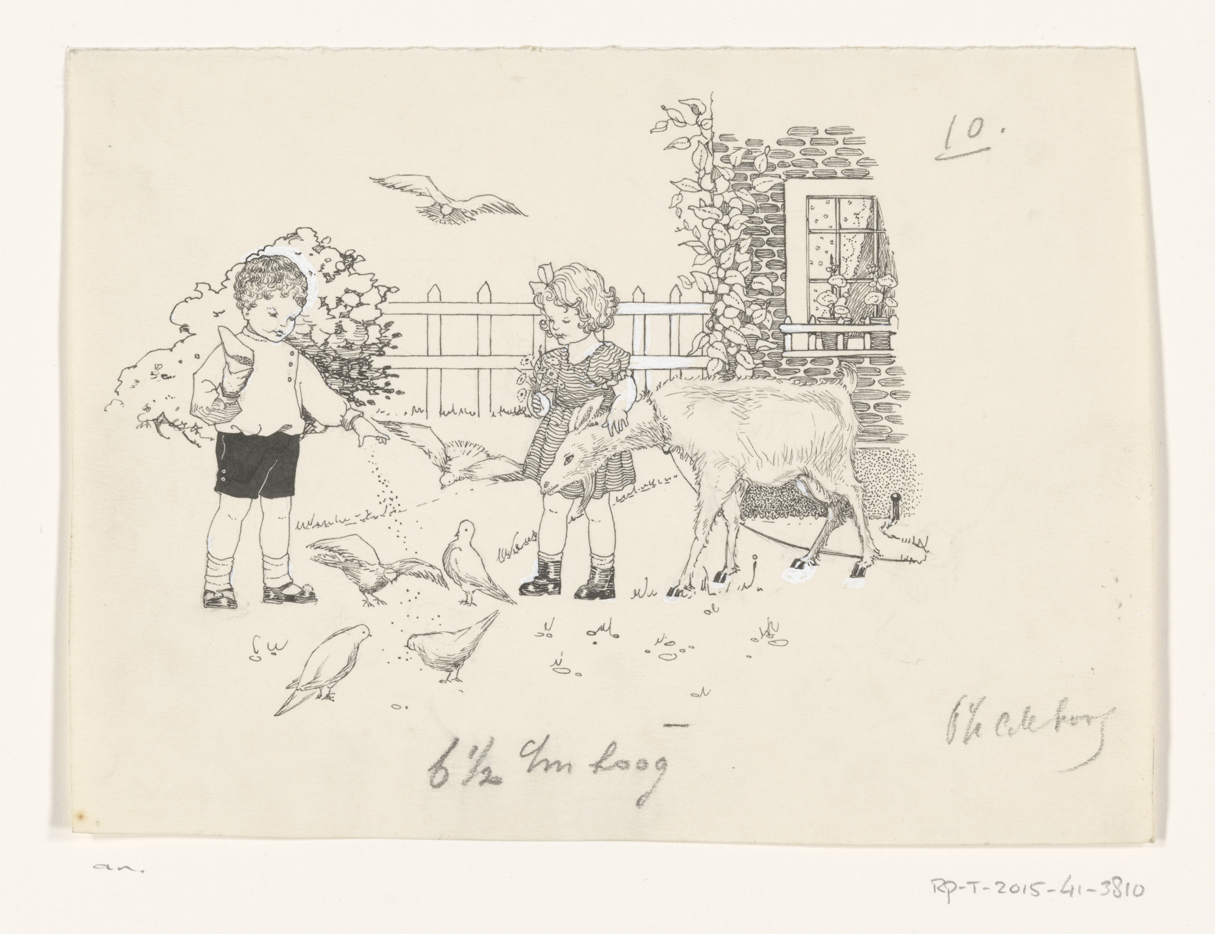 Jongen en meisje met vogels en geit