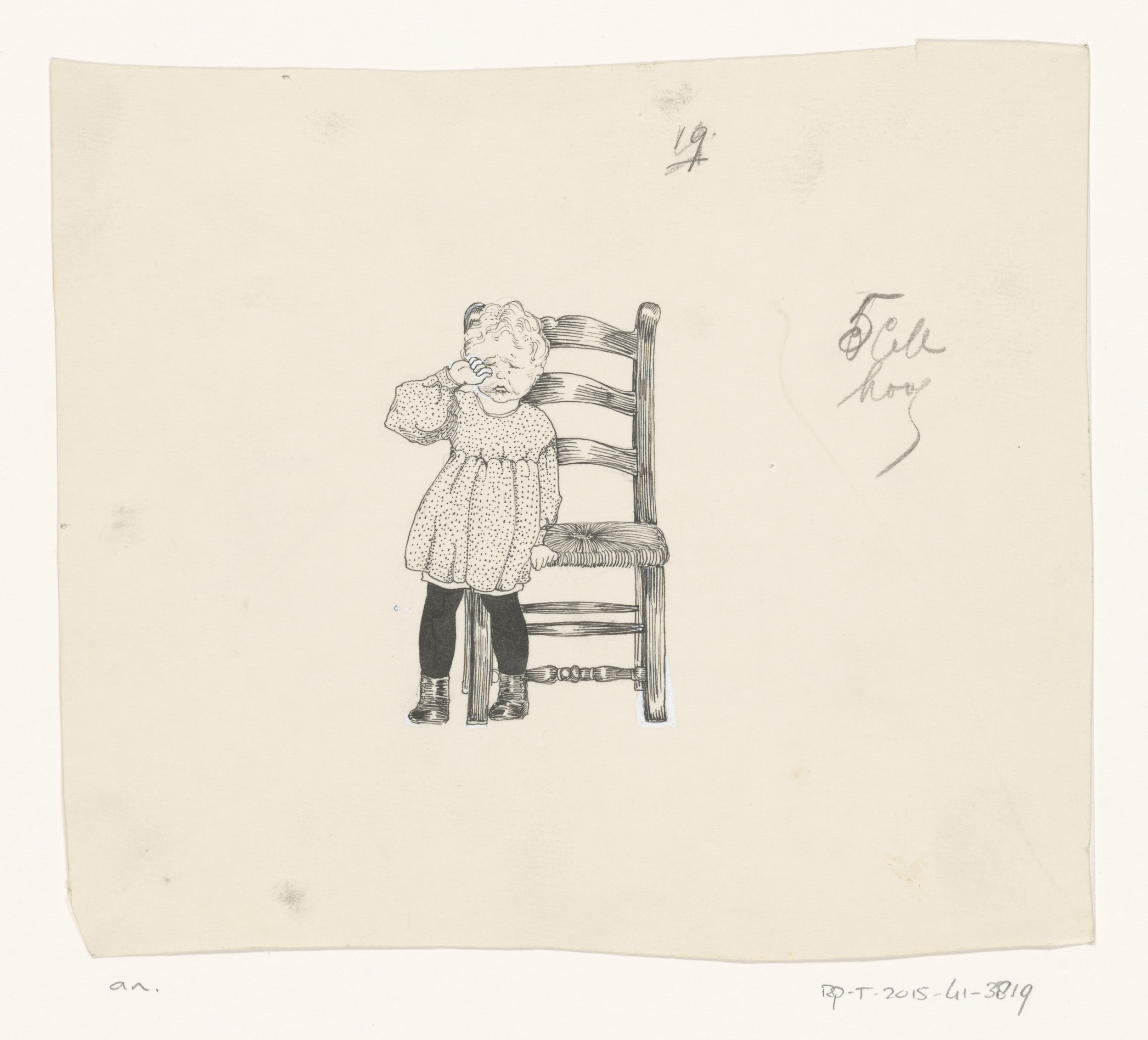 Huilend meisje leunend tegen een stoel