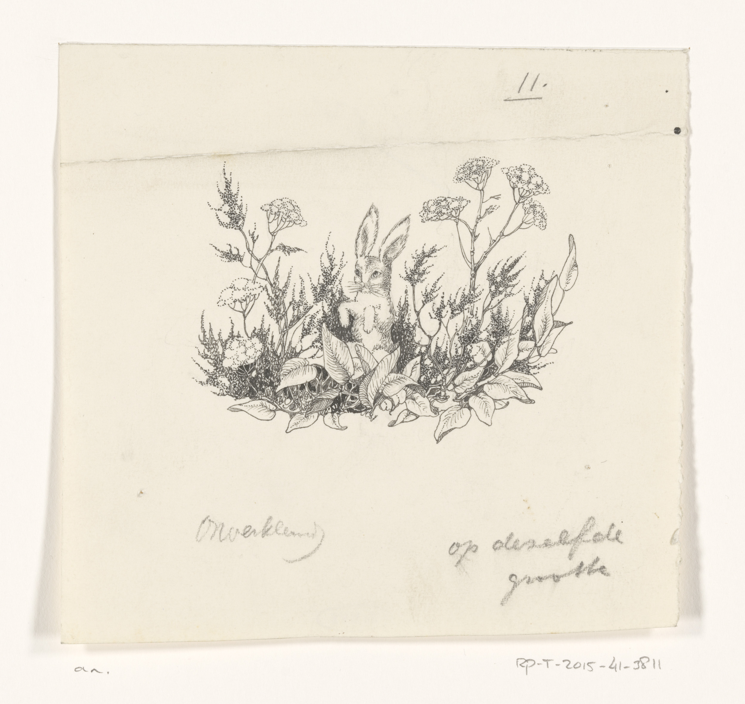 Haas tussen bloemen en planten