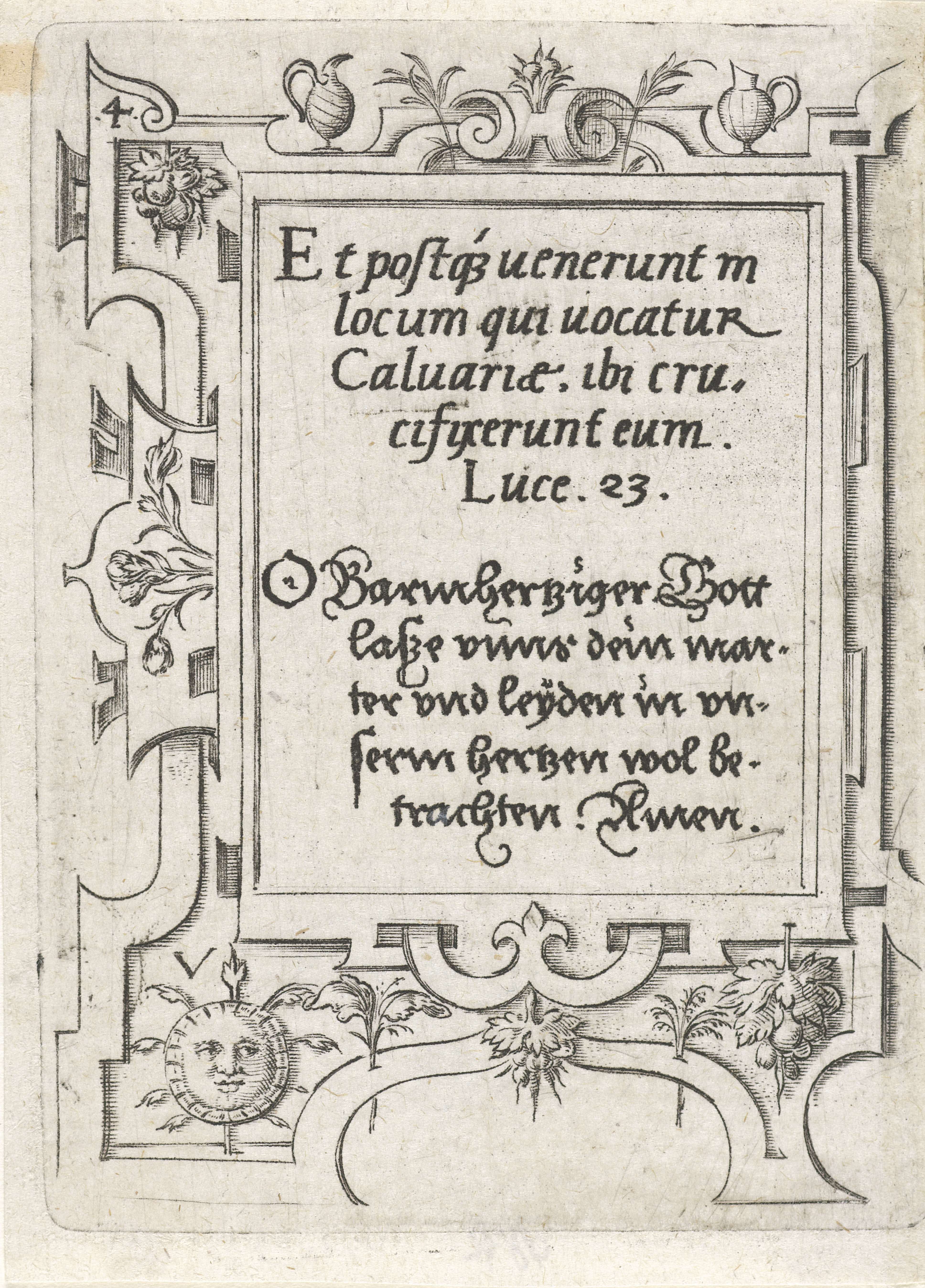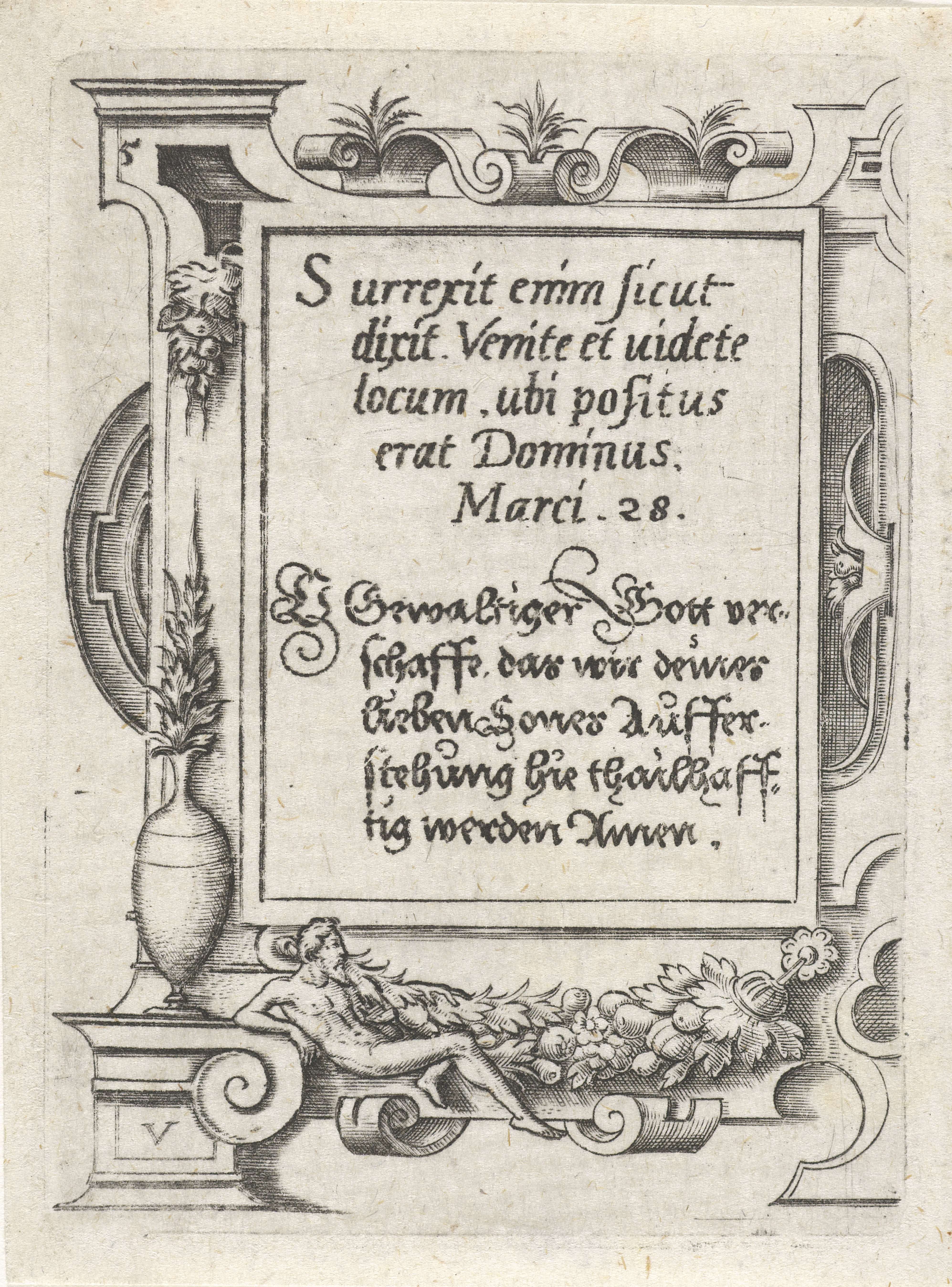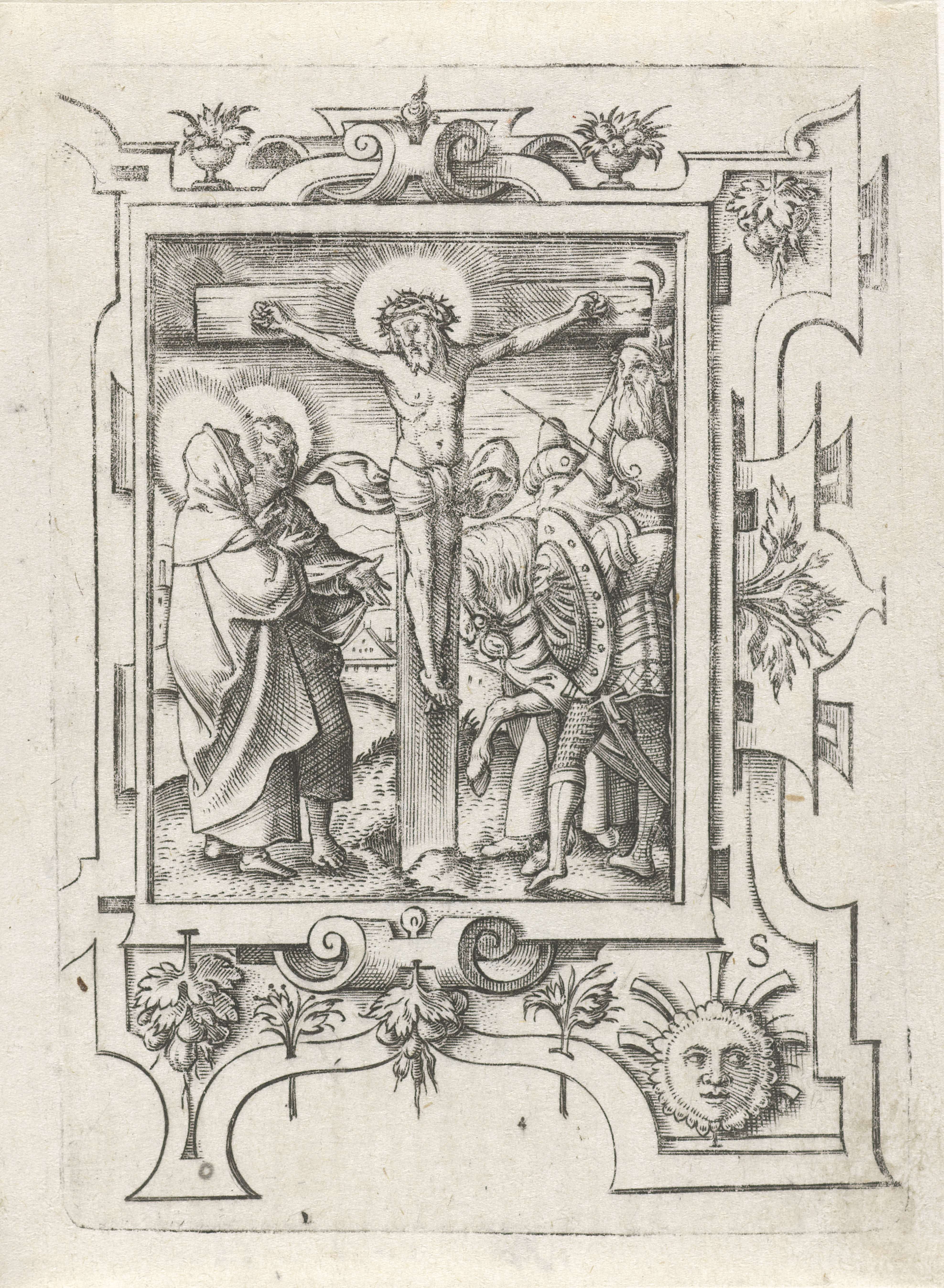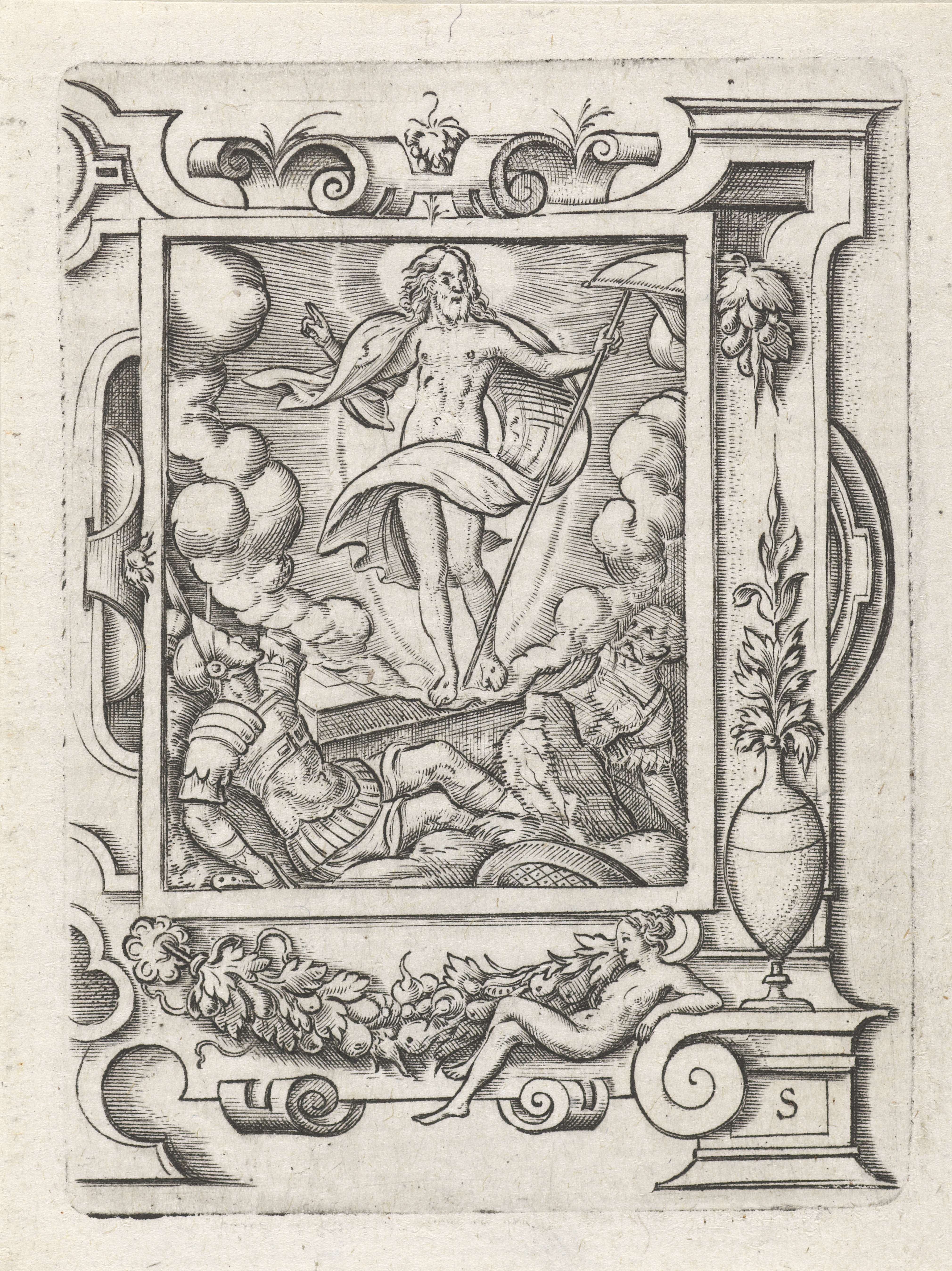 Soldaat met schild in een rolwerk omlijsting