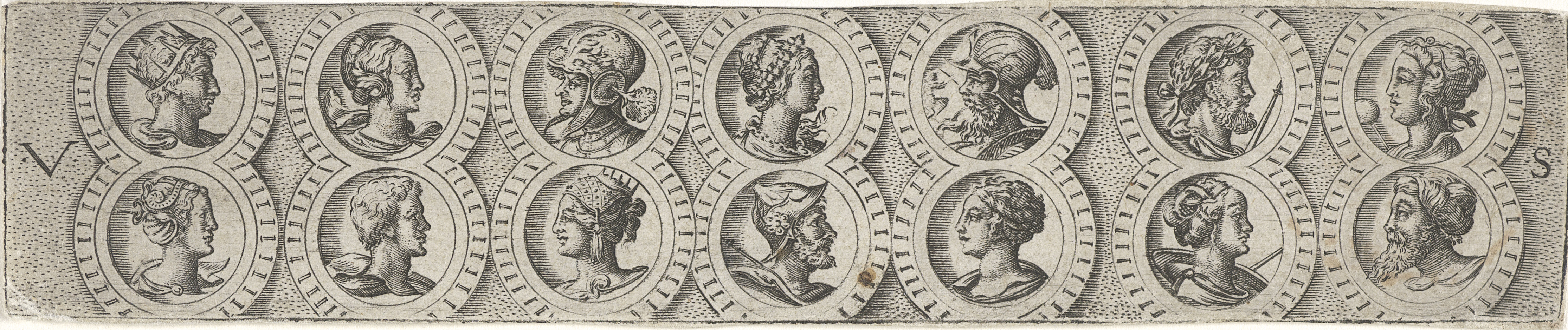 Fries met zes bustes in lauwerkransen