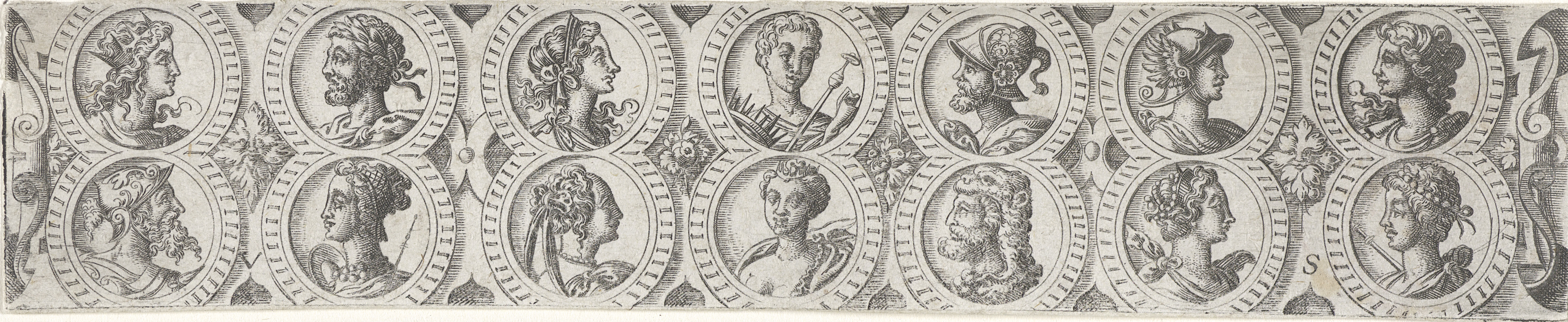Fries met veertien bustes in twee rijen medaillons