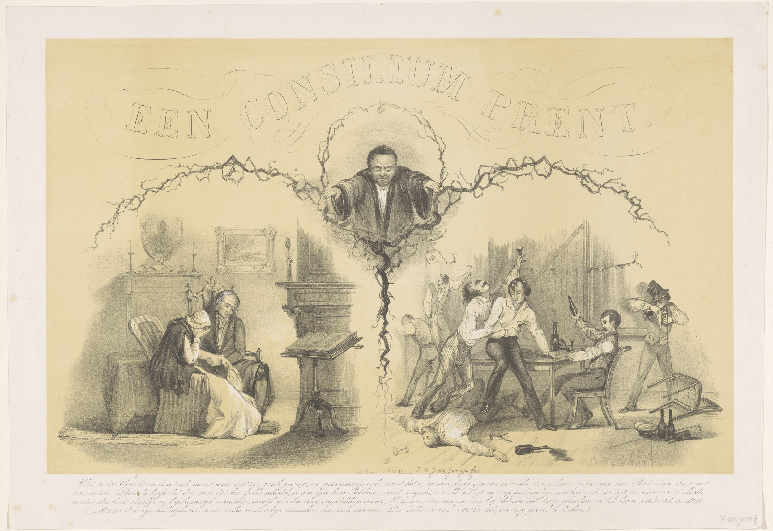 Spotprent op het consilium abeundi gegeven aan drie ...