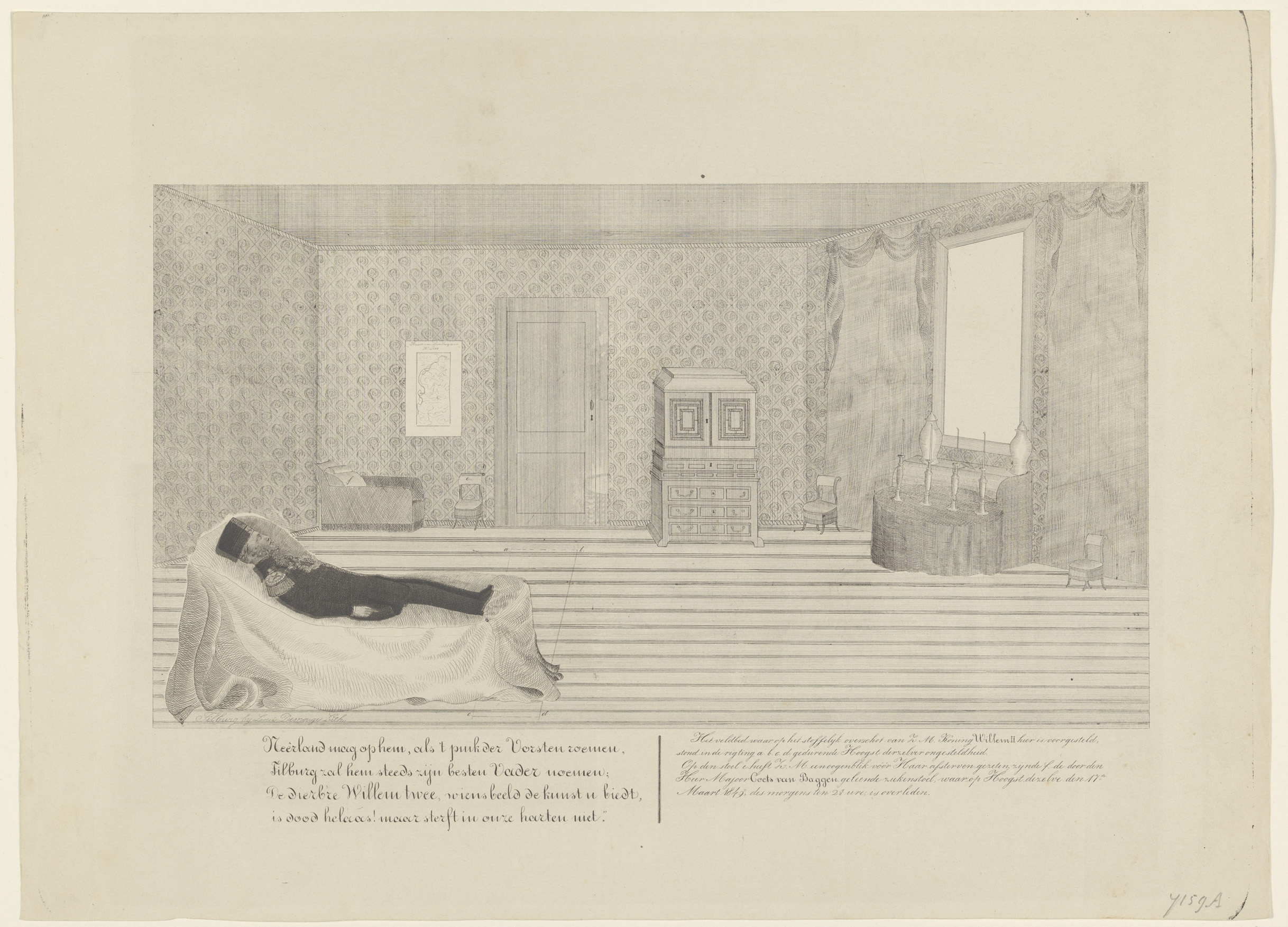 Koning Willem II opgebaard op zijn sterbed, 1849
