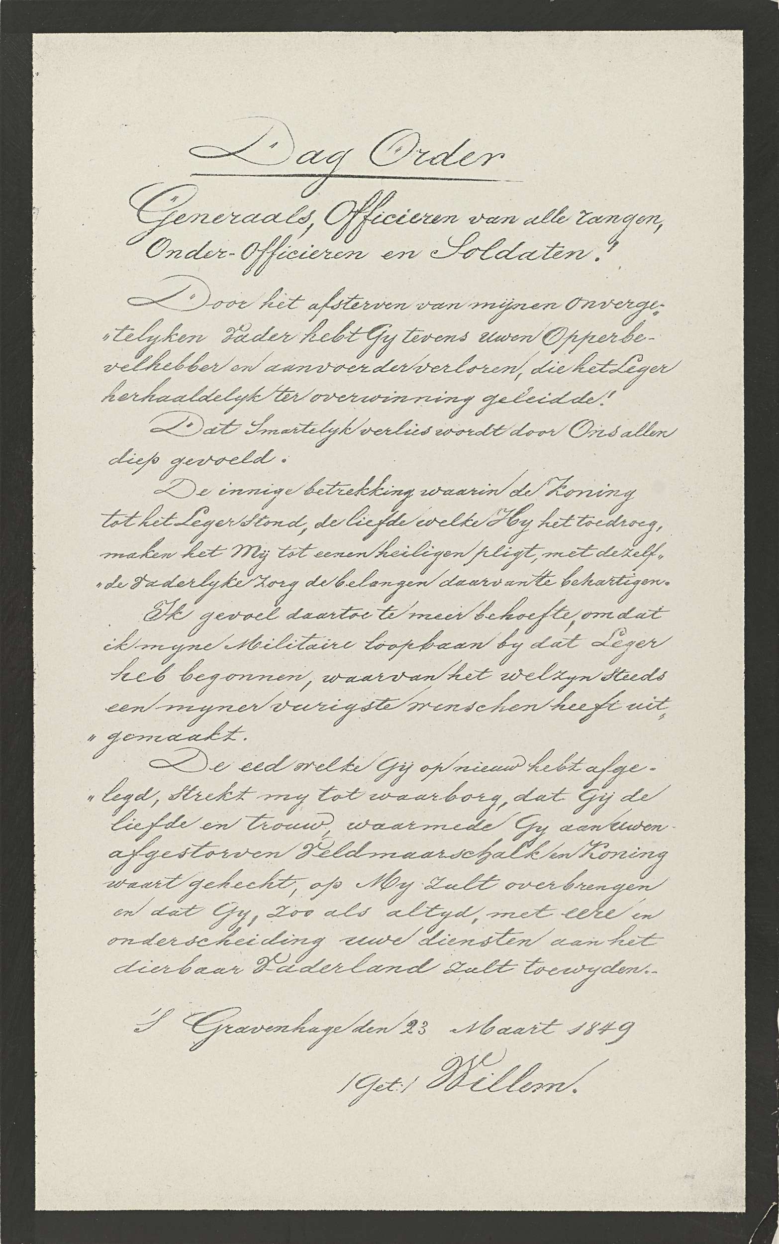 Dagorder van koning Willem III aan het Nederlandse l...