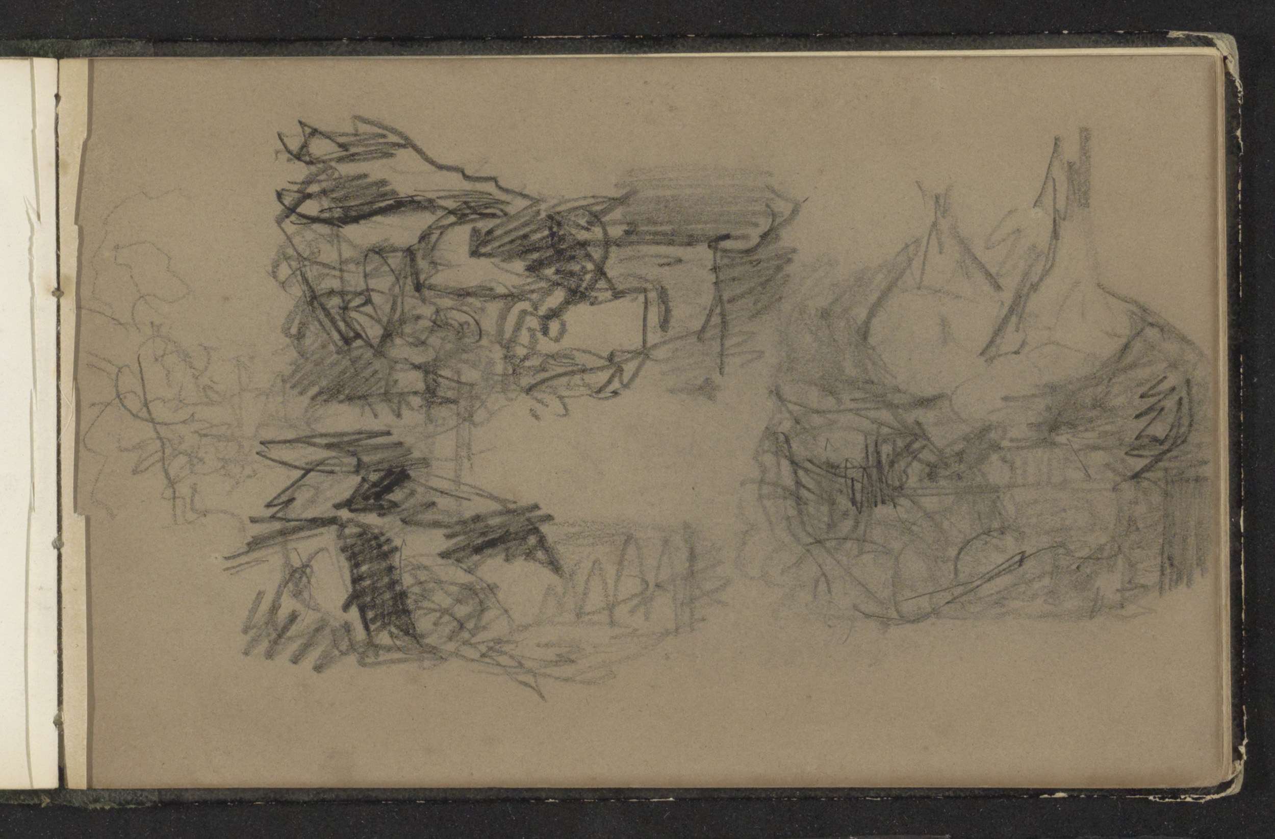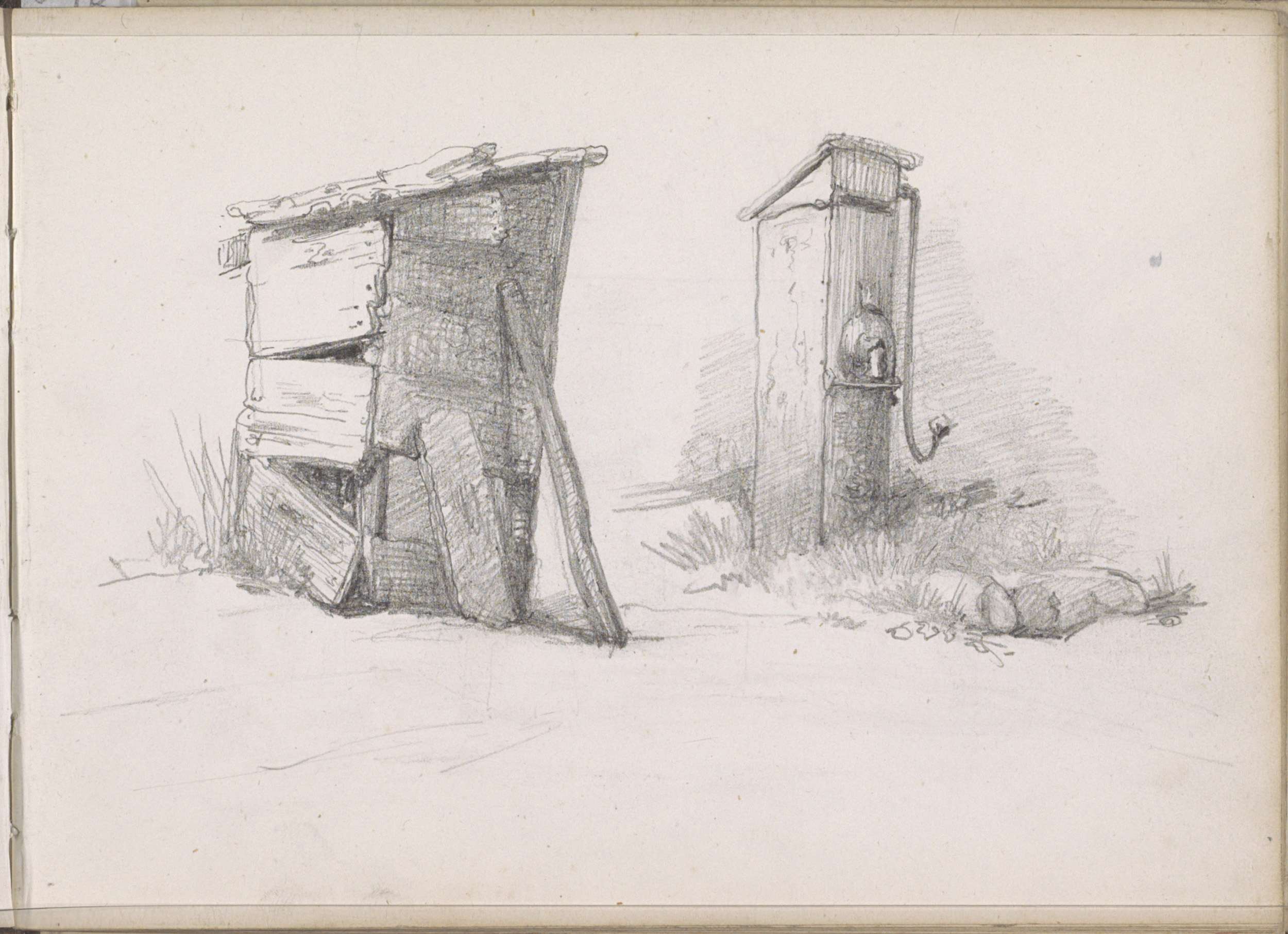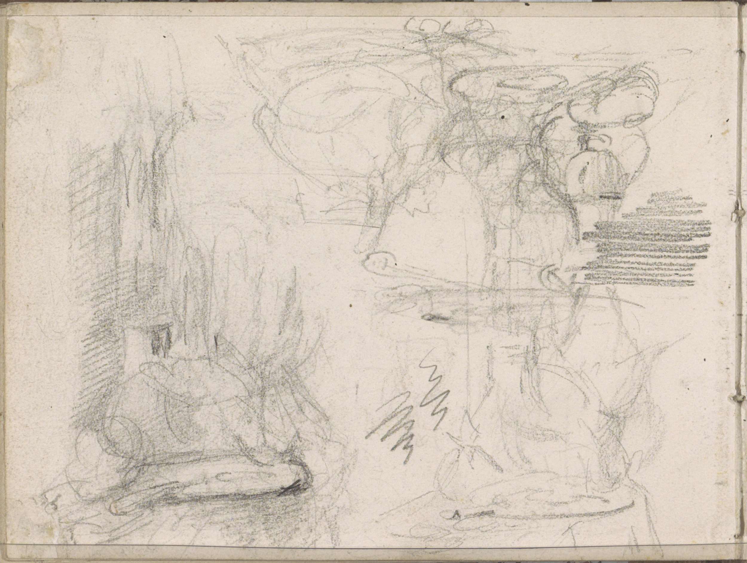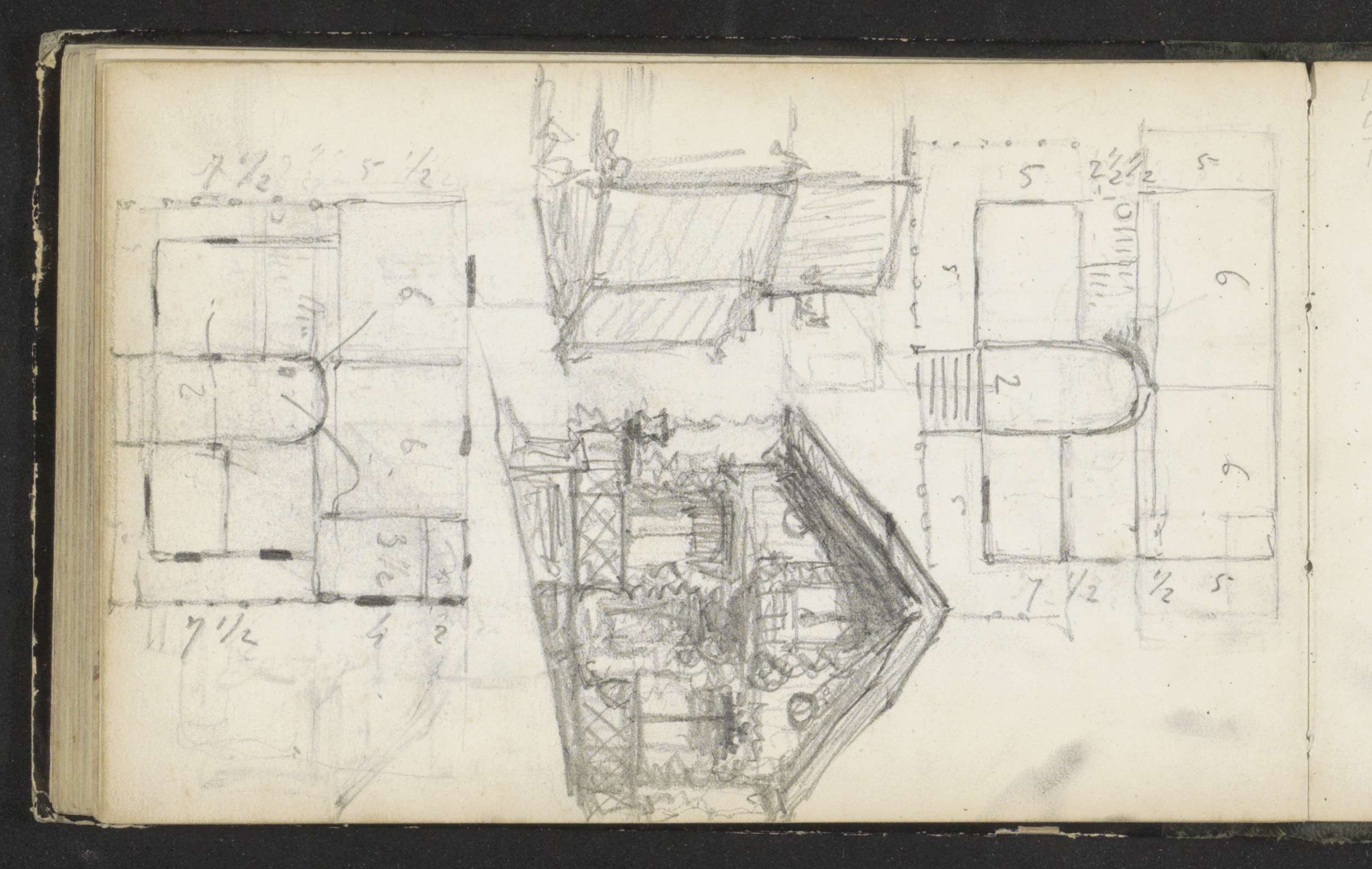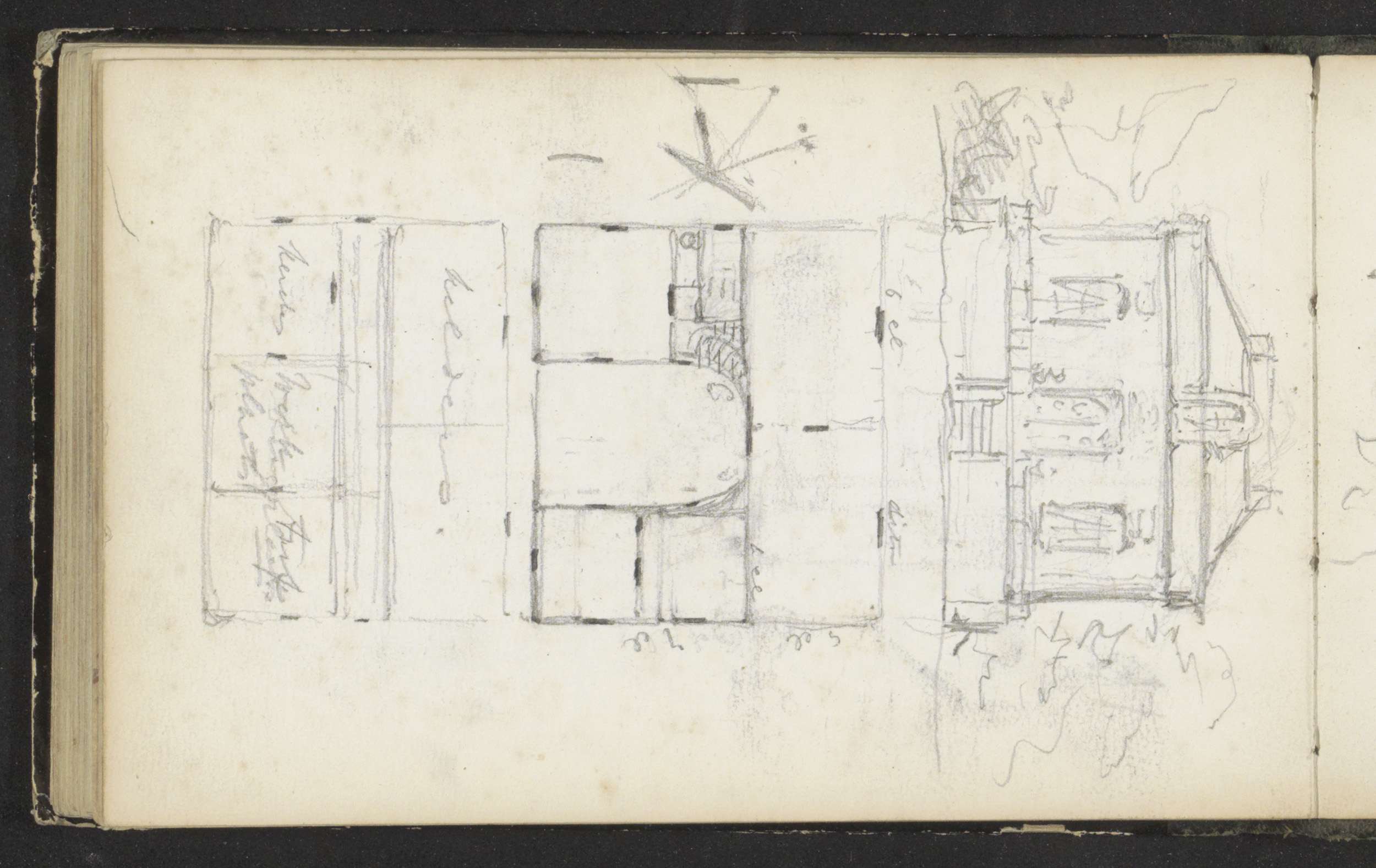 Zijaanzicht en een ontwerp voor de plattegrond van V...