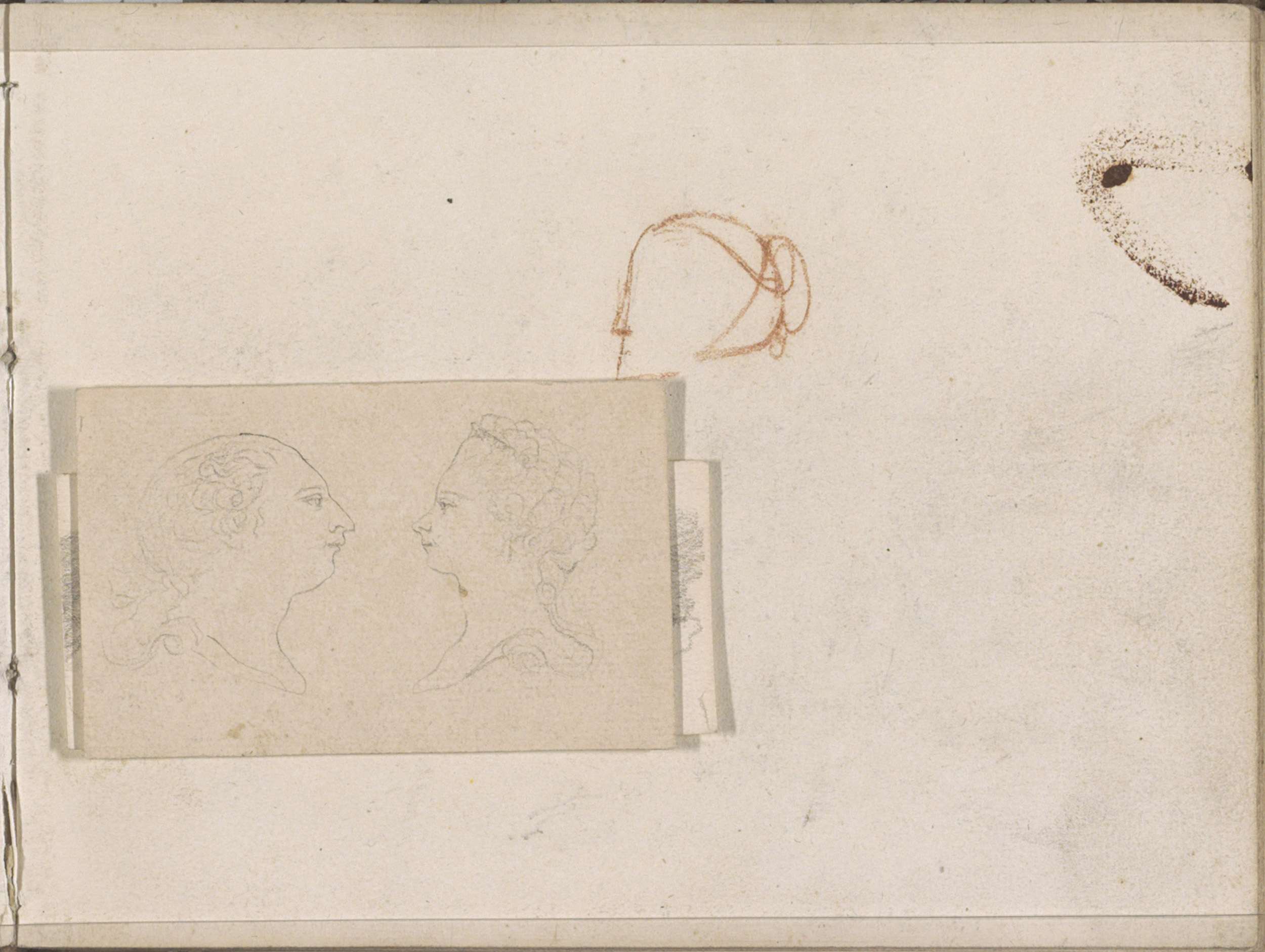 Twee vrouwenkoppen, in profiel naar elkaar gericht
