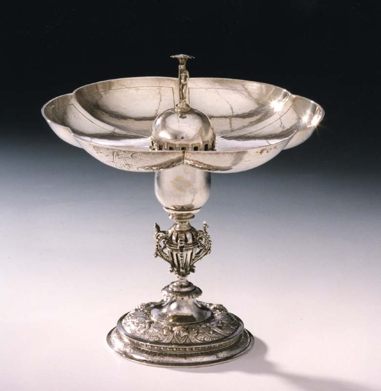 Zilveren boekslot met op de zijstukken een tuinvaas ...