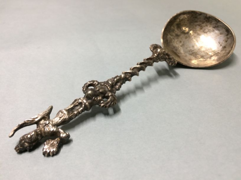 Lepel met bekroning met een pijnappel boven enkele g...