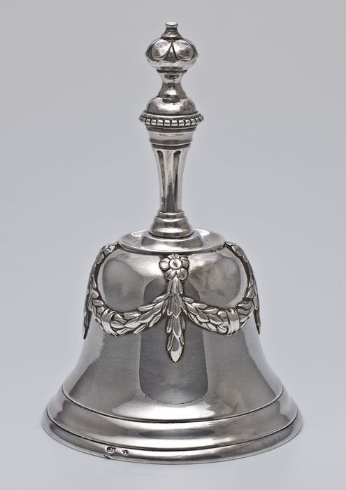Klokvormige, zilveren tafelbel met klepel, gedecoree...