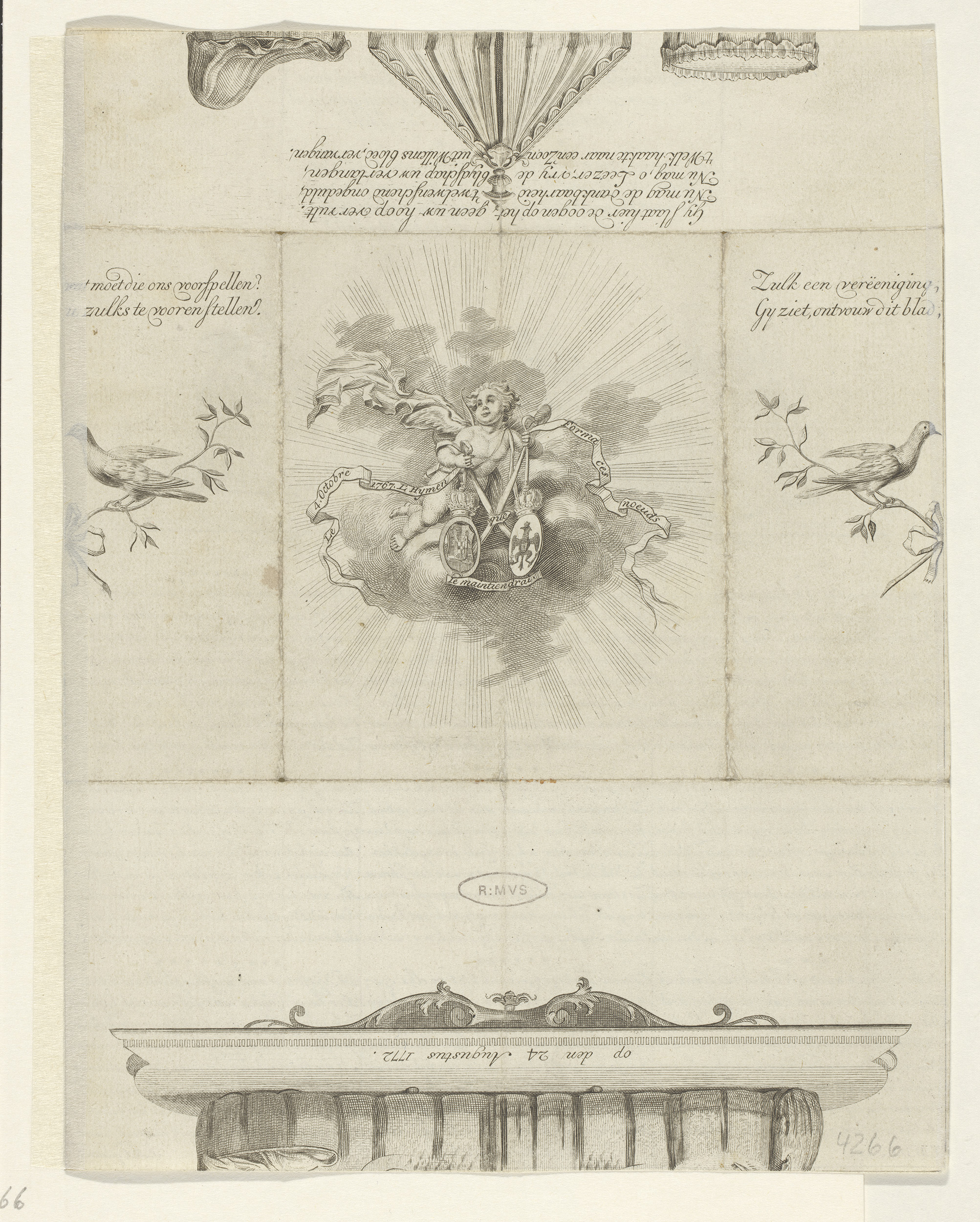 Vouwprent met allegorie op de geboorte van prins Wil...