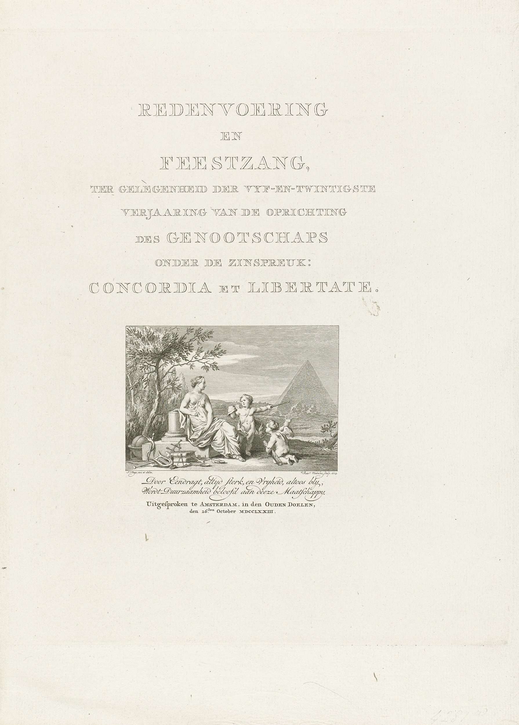 Titelpagina voor: Redenvoering en feestzang, ter gel...