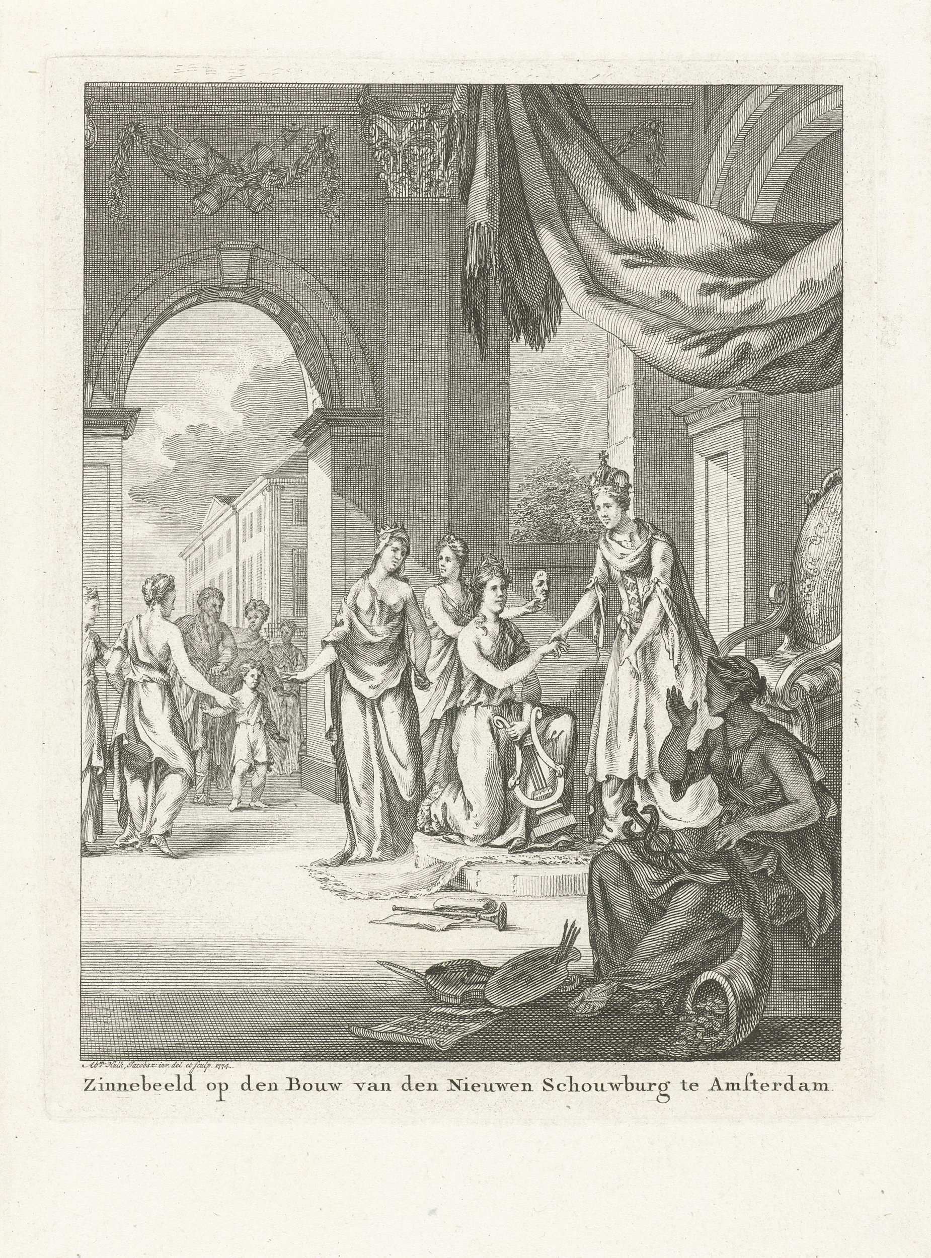 Allegorie op de nieuwe Schouwburg te Amsterdam, 1774