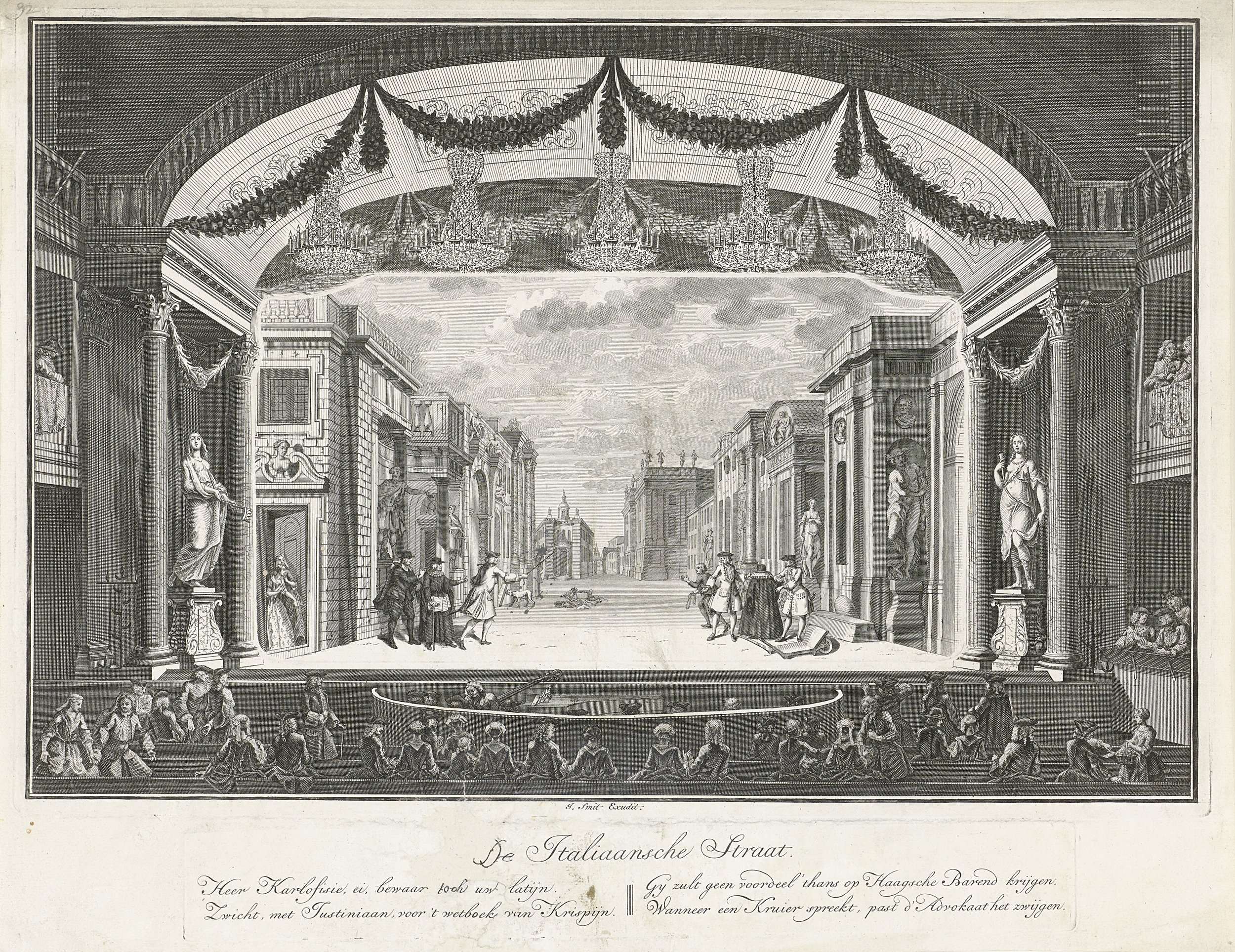 Schouwburg met toneeldecor: De Italiaansche Straat